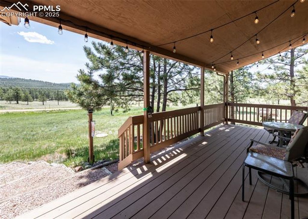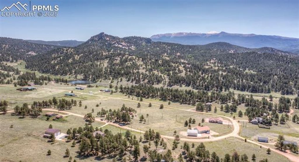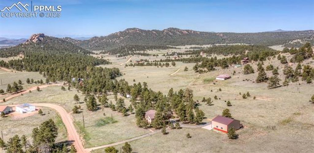 Can you feel your soul begin to relax when you approach this beautifully updated 2-acre retreat? The stunning views and fresh mountain pine scented air greet you with open arms. Comfortable living and mountain retreat meet here. One level living is yours! Step inside to find a cozy yet spacious family room centered around a charming wood-burning stove, perfect for chilly mountain evenings. Tons of windows let in the Colorado sunshine. The dedicated dining room features warm knotted pine flooring and a walk-out to the patio area. The newer updated kitchen boasts dual-tone cabinetry with under-cabinet lighting, upgraded stainless steel appliances, granite countertops with artistic tile backsplash and a rustic vibe that blends style with function. The generous primary suite includes a large walk-in closet and ensuite bathroom with double vanities and a custom tiled walk-in shower. Two additional secondary bedrooms are bright and roomy, each offering ample closet space.The laundry area is thoughtfully designed with a stacked washer and dryer (included),a handy laundry sink, and built-in functionality. Enjoy morning coffee or evening sunsets on the covered front porch that faces lovely mountain vistas. The massive 1680 sq.ft. RV garage is designed to accommodate your RV, large vehicles, machinery, and all your toys! Your dream workshop awaits with ample cabinetry and countertop space. It even includes a "man cave" loft area ideal for relaxing with friends. Need space for guests, a home office, or crafting? The detached 192 sq. ft. guest/craft cottage features electricity, luxury vinyl plank flooring, cabinetry with butcherblock counters.Ready for whatever you can dream. Newer A/C, central vac, newer Anderson windows, newer water heater and furnace means the main systems are updated and will last many years.Close to Cripple Creek, skiing and Eleven Mile Reservoir. Gorgeous rock formations, breathtaking mountain views, and room to roam make this home a truly rare find.