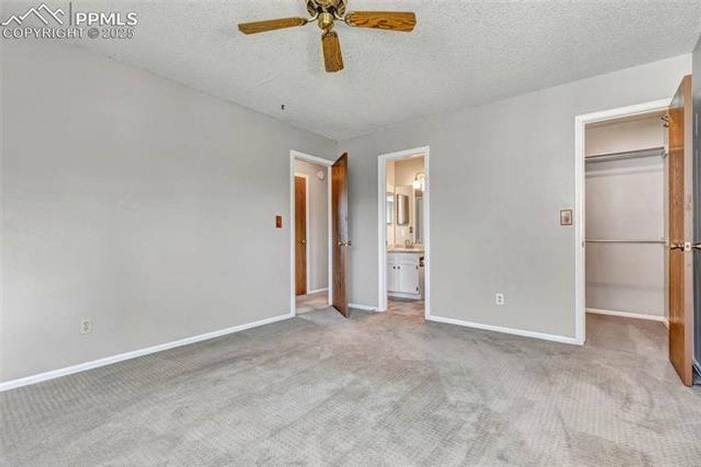 Welcome to this charming tri-level home, ideally situated near schools, Wildflower Park, shopping, and with an easy commute to nearby military installations. Inside, a bright and spacious upper-level living room showcases a large picture window that floods the space with natural light. The kitchen offers convenient eat-in dining, walk-out access, and a seamless flow to the newer oversized composite deck"”perfect for entertaining or relaxing while overlooking the beautifully landscaped backyard. Upstairs, you'll find three bedrooms, including the primary suite with a walk-in closet and ensuite bath that also connects to the hallway for added convenience. The lower level features a generous family room highlighted by an elegant brick wood-burning fireplace, creating a warm and welcoming atmosphere. Additional highlights include an attached 2-car garage, automatic front and rear sprinkler system, and breathtaking views of Pikes Peak and the Front Range. Seller willing to leave trampoline.