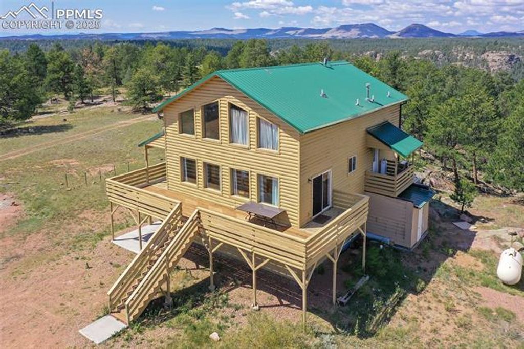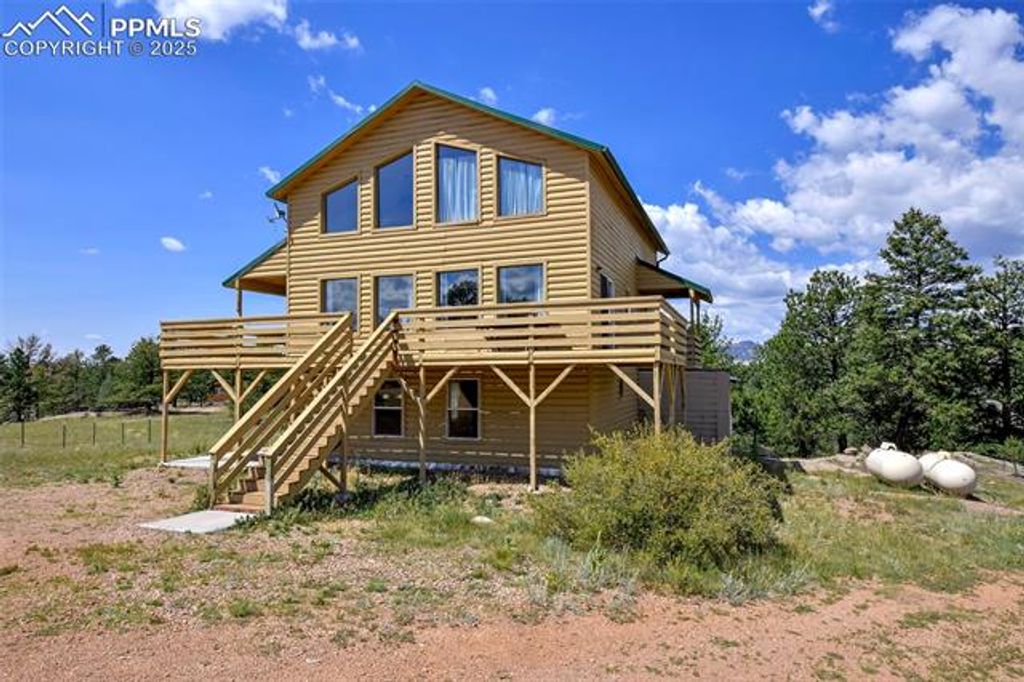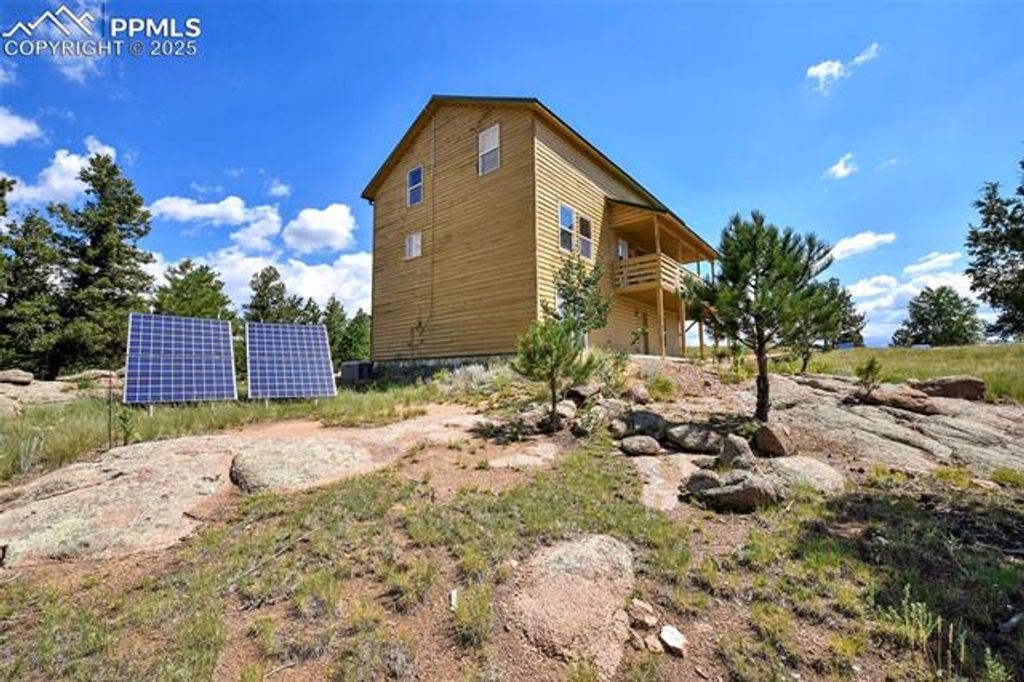 MOUNTAIN RETREAT, THE ONE YOU HAVE BEEN WAITING FOR!!! JUST AN HOUR FROM COLORADO SPRINGS!!! VERY PRIVATE SETTING WITH EXCEPTIONAL VIEWS - PANORAMIC VIEWS OF TREES AND/OR MOUNTAINS FROM EVERY WINDOW!!! 3.8 ACRES AND LOCATED AT THE END OF A QUITE CUL-DE-SAC; Over 3000 Square Feet WITH ALL 3 LEVELS OF LIVING, ABOVE GROUND!!! Outstanding Home Just Waiting For Your Family And Friends To Enjoy/Share!!! Amenities: Large Wrap-Around Deck; Loft Area Makes A Great Office Space; Second Loft Area Could Be 5th Bedroom (Does Not Have A Closet); Large Family/Recreation Room In Lower Level; 8 x 4 Storage Closet On Upper Level; SOLAR SYSTEM AND GENERATOR; VIEWS OF PIKES PEAK, THE SANGREOS, AND ROCK OUTCROPPINGS!!! IF YOU HAVE BEEN "DREAMING" OF A MOUNTAIN HOME, DON'T MISS SEEING THIS ONE, WHETHER YOU DESIRE A FULL TIME HOME, A VACATION HOME, AND/OR A SHORT TERM RENTAL PROPERTY!!! CHECK OUT THE PICTURES OF THIS OUTSTANDING PROPERTY!!!