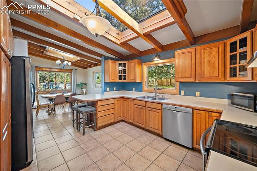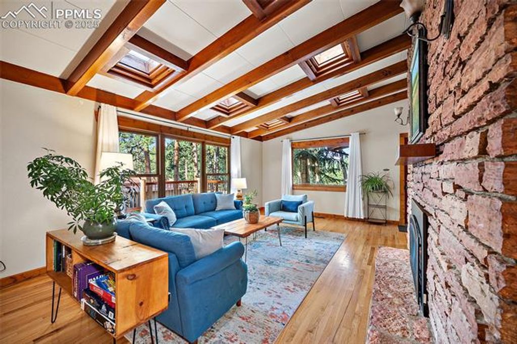 Step inside and instantly feel the charm of a Colorado log cabin retreat. With 4 bedrooms, 3 baths, and a half-acre of trees and mountain views, this home brings together rustic warmth and modern comfort. The oversized garage is perfect for your truck, outdoor gear, or even a workshop to bring your mountain projects to life. Whether you're gathered around the fireplace, enjoying coffee on the deck, or simply soaking in the quiet beauty of Woodland Park, this home gives you space to slow down, spread out, and savor the mountain lifestyle.