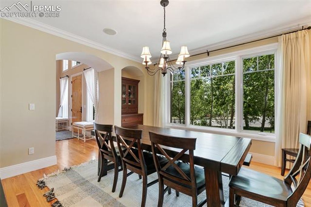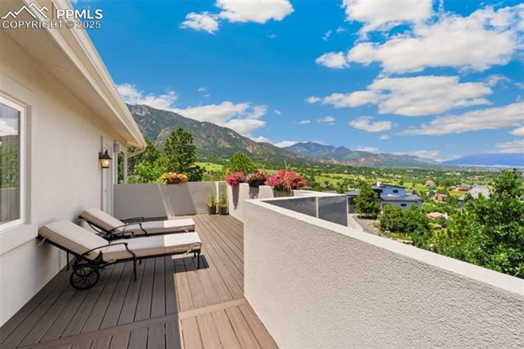 Live above it all in this breathtaking Colorado Springs sanctuary where luxury, design, and panoramic views come together in perfect harmony. Nestled in the coveted Cheyenne Mountain District 12, this extraordinary 6,782 sq ft residence offers 5 spacious bedrooms, 6 bathrooms, and an exceptional floor plan designed for both upscale entertaining and everyday comfort. From the moment you enter, you're greeted by soaring ceilings, rich hardwood flooring, and expansive brand-new windows that frame unobstructed views of Cheyenne Mountain and the glittering city below. The heart of the home is a gourmet kitchen featuring granite countertops, high-end cabinetry, and a gas line available if you prefer to switch to a gas cooktop"”ideal for the home chef who craves both beauty and function. The adjoining great room impresses with custom built-ins, a fireplace, and an atmosphere that blends elegance with warmth. Step outside onto the expansive main-level deck"”perfect for hosting sunset dinners, relaxing with morning coffee, or simply taking in the majestic mountain views. An additional upper deck offers even more outdoor space to soak in the Colorado beauty. The invisible fencing around the property allows pets to roam safely while preserving the open, natural feel of the backyard. After a long day, unwind in your private hot tub tucked away in a peaceful outdoor setting. The fully finished walk-out basement is an entertainer's dream, complete with a spacious game room, wet bar, and ample space for guests or multigenerational living. Additional standout features include a tile roof, three-car garage, two furnaces, two water heaters, and dual A/C units, ensuring year-round comfort and reliability. Ideally located just minutes from premier shopping, fine dining, and outdoor adventure, this home is the perfect blend of grandeur and practicality. If you've been searching for a property that offers both lifestyle and location, this is the one that truly has it all.