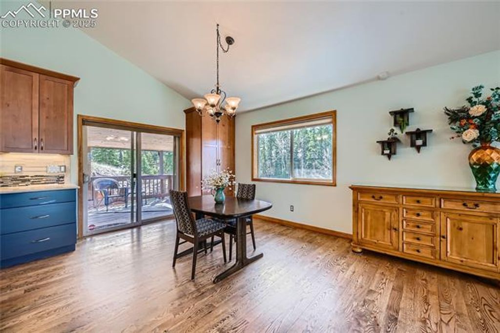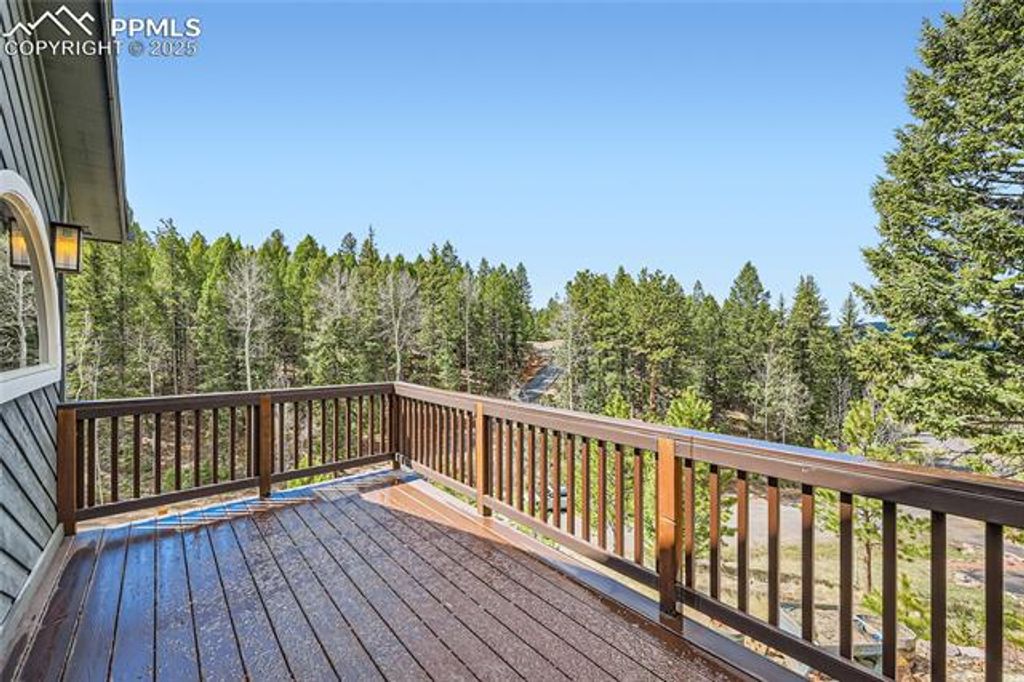 Charming Mountain Retreat in Scenic Woodland Park, Colorado Welcome to your dream mountain retreat, perfectly situated in a quiet neighborhood with stunning hilltop views and south facing driveway and perennial garden. This beautifully updated home blends classic charm with modern style"”an ideal base for adventure or relaxation. Start your mornings on the private deck, coffee in hand, surrounded by vibrant perennial gardens and local wildlife. Explore nearby hiking and biking trails, cast a line at your favorite fishing spot, or simply bask in the Colorado sunshine from one of two scenic decks. Your elevated location provides a front row seat to dramatic views as mountain weather rolls in. Inside, soaring vaulted ceilings, rich wood floors, and abundant natural light create a warm, inviting atmosphere. A cozy fireplace anchors the living room, while the open-concept gourmet kitchen features an oversized island, granite countertops, stylish backsplash, JennAir wall oven and warming drawer, and high-end cabinetry"”perfect for entertaining. Retreat to the spa-inspired primary suite with a walk-in closet, tranquil sitting room with fireplace, and private deck access"”perfect for stargazing. Deck is wired for 220 and hot tub ready. The expansive lower-level family room offers endless possibilities and opens to a covered patio offering a separate mother-in-law entrance. Enjoy low-maintenance landscaping, 330+ days of sunshine, and proximity to the Aquatic Center, Meadow Wood Sports Complex, and Mueller State Park. Just 35 minutes to Colorado Springs and under two hours to world-class skiing. Schedule your private tour today and experience mountain living at its finest.