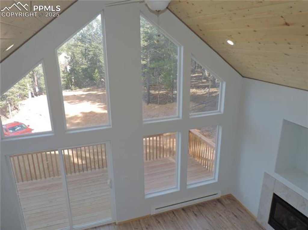 BEAUTIFUL mountain chalet with Expansive windows that bring in natural lighting & nature. The living room features a charming propane log fireplace, soaring cathedral pine ceilings, recessed lighting & it also walks out to the sprawling deck. This home features a double lot with some mountain views. The lot is moderately treed with mature pines. 15 minutes from the town of Woodland Park and amenities. This home was built to take in the views! 2x6 construction, R19 in the walls, R38 in the ceiling. Vinyl thermo pane windows throughout that have a low E factor to prevent fading from our amazing sunshine. The primary bedroom has an attached bath and generous sized closet. The loft space lends room for a home office, a kids play place, or an additional sleeping area. There are beautiful pine ceilings in the rooms with vaulted ceilings. Some rooms have recessed lighting. There are sharp Hickory cabinets in the kitchen & in the bathroom. Newer Luxury Vinyl is throughout the home. The laundry room is tile. "Hardie" fire resistant wood grain siding on the exterior that really holds up great in the mountains. Lifetime brand dimensional shingle roof. Tasteful earthy colors inside & out. CAT-5 prewire for sound systems, telephone & internet. The lower level is poured concrete and features a sliding glass door. The roads are privately maintained. There is a voluntary $250 fee for snow removal & road maintenance. The water source is a 2600-gallon cistern for a water source. Short term and long-term rentals are permitted. Close to Charis Bible College, Summit Elementary school and many amenities.