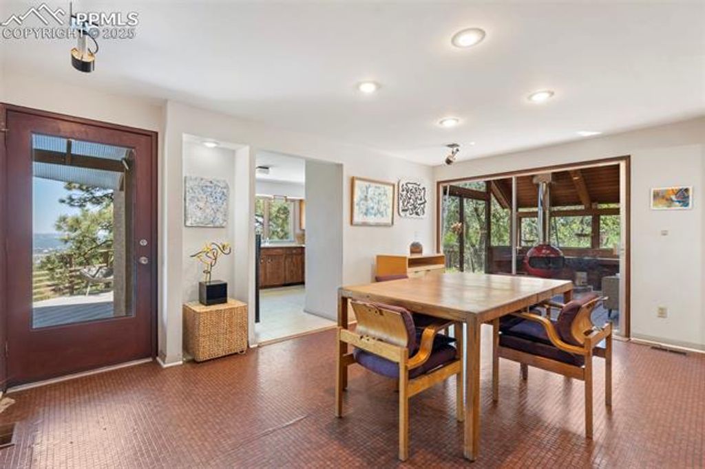 Tucked into the hillside in coveted Point Sublime, this is one of the subdivision's original, architect-designed mid-century modern homes"”rarely available, original owner, and still zoned Agricultural (A) for exceptional flexibility. A modest footprint on a huge 2.75-acre treed lot belies a dramatic interior: a large slump-stone fireplace anchors the living room, while a classic sunken conversation pit invites late-night talks and sunrise coffees framed by floor-to-ceiling glass. The result is the quintessential MCM mix of warmth, clean lines, and connection to nature. Thoughtfully oriented to capture natural light and city vistas, the home lives big with open social spaces and smart indoor-outdoor flow. Elevated decks and patios step down the slope to native landscaping, creating a private perch above Colorado Springs. Original mid-century details pair with selective updates so you can enjoy the vibe on day one"”or bring your own restoration vision to celebrate the era. The highlights include a Prominent architect-designed, original Point Sublime residence Featuring True mid-century elements: a slump-stone fireplace, a sunken conversation pit, expansive glazing, and a low-profile roofline on a perched site with commanding views of Colorado Springs and twinkling night lights. Seamless indoor-outdoor living with decks/patios nestled into the hillside, as well as a passive solar/sun room, with a beautiful MCM wood-burning fireplace, is perfect for retaining heat throughout the winter. If you're drawn to unique mid-century architecture"”spaces that encourage gathering, celebrate natural materials, and frame the landscape"”625 Vista Grande delivers. It's a livable time capsule in one of Colorado Springs' most scenic neighborhoods, offering authenticity, privacy, and a soulful connection to the site. Buyer to verify all zoning/usage options with the City/County. Home sold as-is.
