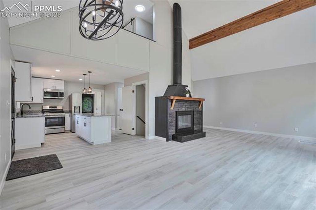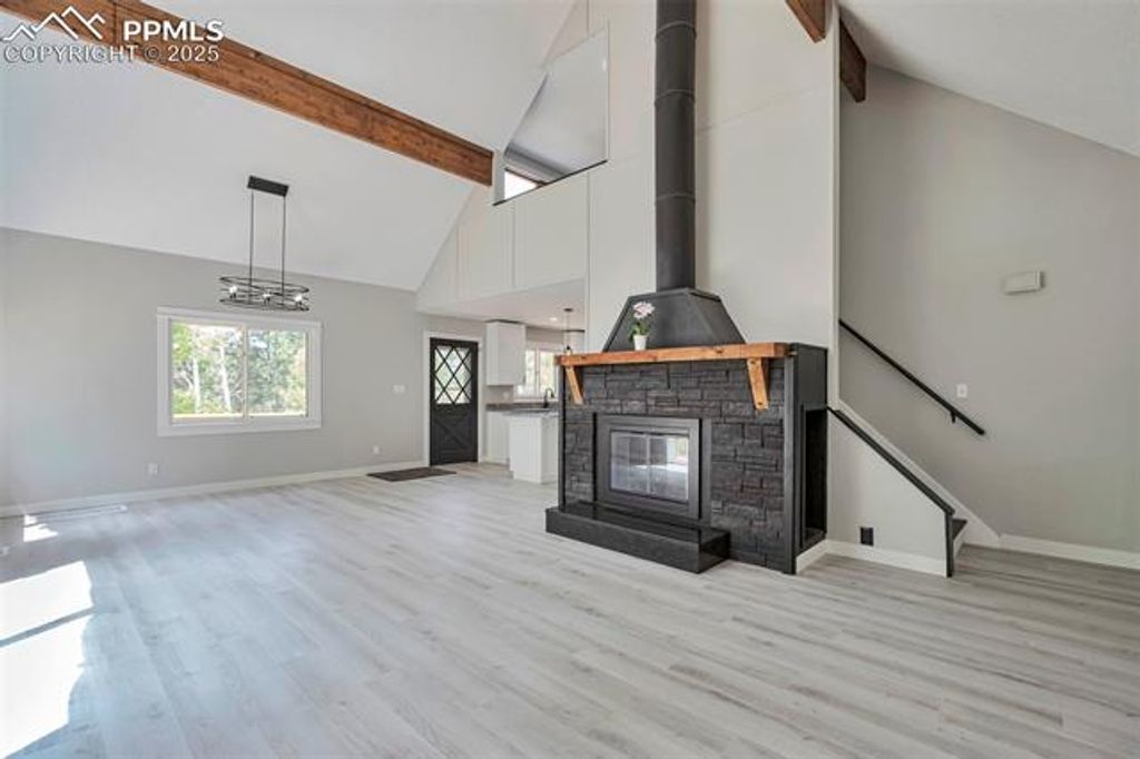 Beautiful 3 bedroom Remodeled Home on a Scenic Corner .29 Acre Lot Welcome to this stunning, newly remodeled home nestled on a picturesque tree-lined corner lot. Experience true mountain living with the perfect balance of tranquility and convenience. This home offers peaceful, seclusion, while being just minutes from the charming city of Woodland Park with its shops, restaurants and amenities. With 3 bedrooms, 2.5 baths, and an oversized 2-car garage. This move-in-ready property offers the perfect blend of modern updates and rustic charm. Step inside and experience the "wow" factor of the open-concept main level featuring vaulted ceilings, a cozy fireplace centerpiece, and a bright, airy loft that creates a warm and inviting atmosphere. The seller spared no expense in upgrades"”enjoy a brand-new two-sided wraparound deck, all-new flooring, updated lighting and electrical panel, modern doors, fresh paint, complete upgraded bathrooms, and stylish kitchen appliances. Granite countertops and new cabinets complete the kitchen's sleek, functional design. The main level includes 2 bedrooms, 1 full bathroom and open kitchen, living, and dining areas. The loft offers a versatile space, ideal for a private master suite, office, or reading nook, complete with its own bathroom featuring a walk-in shower. The fully finished walkout basement is perfect for entertaining or additional living space, complete with a wood burning stove and a dedicated laundry area. Additional features: Septic and leach field system, Natural gas service and Sewer line recently repaired for buyer peace of mind. Enjoy serene mornings or relaxing sunset evenings on your spacious deck, surrounded by nature and the gentle shade of mature trees. Whether you love to entertain or simply unwind with a view, this home delivers. Don't miss out! This beautiful home won't last long, schedule your private showing today!
