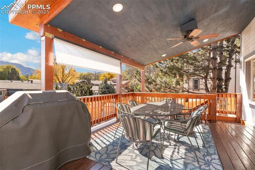 The perfect blend of location, lifestyle & livability located in desirable Southwest Colorado Springs * Exceptional opportunity * Top-rated schools within walking distance * From the curb, the expanded driveway sets the tone"”ideal for basketball, hockey & endless play, plus abundant off-street parking is a bonus * Charming covered front porch with rock aggregate finish welcomes guests in style * Step inside to experience the soaring ceilings, extensive maple hardwoods, updated lighting & a bright, open feel throughout * Generous formal living & dining spaces are the perfect place for entertaining * Beautifully refreshed kitchen is a chef's dream boasting Hickory cabinetry, new paint, solid surface countertops, center island, stainless steel appliances, double ovens, breakfast bar & sun drenched bayed eating nook * Inviting family room with floor-to-ceiling brick fireplace (gas) & custom shelving * Take in the impressive Cheyenne Mountain views from the expansive deck, partially covered with ceiling fan & pull-down shade adding extreme privacy * Main-level study with French doors, built-ins, new carpet & fresh paint * Mudroom off garage & convenient 1/2 bath on main * Upper level hosts a luxurious primary retreat with bayed sitting area, spa-like 5-piece bath & walk-in closet, along with two additional bedrooms & secondary full bath * Walk-out lower level offers two more bedrooms (or flex space / craft room), massive rec-room with wet bar to include Kegging System, billiards/gaming area (pool table, accessories & light included) * Wet Sauna included * Huge storage * Fenced back yard w/ mature landscaping, planter boxes & shed * Newer exterior & interior paint, Pella windows on South side & deck staining * Outdoor living perfect for BBQs, sunset watching & year-round enjoyment * Flooded with natural light, smartly designed floor-plan fits today's lifestyle * Ideally located near parks, trails, shopping & dining * Perfect in every way"” this one checks every box, WOW...