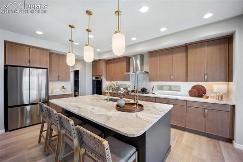 Introducing this exceptional Willowwood II two-story home, perfectly positioned on a walk-out lot that backs to open space"”offering peaceful views and an impressive sense of privacy. Step inside to an expansive, light-filled layout that highlights a gourmet kitchen with stainless steel appliances, quartz countertops, a large center island, and a walk-in pantry. The adjoining great room, formal dining area, and main-level study provide flexible spaces for everyday living, working, and hosting. Upstairs, you'll find four spacious bedrooms, including a well-appointed primary suite featuring a 5-piece bath and a generous walk-in closet. The finished walk-out basement adds even more versatility with a large recreation room"”ideal for movie nights, fitness space, or play areas"”plus an additional bedroom and full bath. Enjoy Colorado's outdoor beauty from the elevated deck overlooking open space, or explore the nearby network of community parks and trails. With its modern finishes, thoughtful design, and an exceptional homesite, this Willowwood II offers an outstanding opportunity in Sterling Ranch. Measurements and square footage are approximate and may vary. Information deemed reliable but not guaranteed and subject to change.