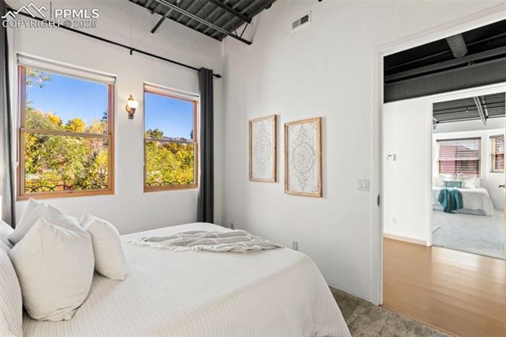 Welcome to this stunning 3-bedroom, 3-bath residence perfectly situated in the vibrant heart of historic Downtown Manitou Springs. This rare find blends charm, convenience, and modern comfort"”steps away from eclectic shops, restaurants, breweries, and the best of the downtown lifestyle. Enjoy two enclosed balconies"”one overlooking the tranquil creek and the other facing bustling Manitou Avenue, offering the perfect spot to soak in local parades, live music, and community events like the Coffin Races and Carnivale"”all from the comfort of home. Inside, you'll find two spacious primary suites, each with unique natural stone bathrooms, new lush carpet, and abundant built-in shelving in closets. The bright, open-concept living area features industrial accents, tall ceilings, and a cozy gas fireplace. The gourmet kitchen is designed for both style and function, complete with an island, gas stove, and range"”ideal for entertaining. Outdoor enthusiasts will love the proximity to the Manitou Incline, Garden of the Gods, Barr Trail, and Red Rock Canyon Open Space. Just a 15-minute drive gets you to Downtown Colorado Springs, or head west to Cascade and Woodland Park for a mountain escape. Steeped in local history, this building once served as the Manitou Mineral Water Company Bottling Works, where mineral water from the Navajo Spring was bottled"”adding a touch of heritage to this truly unique home. Additional highlights include: Private street access to Manitou Avenue from the community's second floor (key exit/code entry for privacy), three coveted parking spaces (two in the attached garage plus one designated outdoor space within the gated community), large private storage area in the garage for each unit, elevator access, community courtyard, and exercise room, and lastly the laundry is conveniently located in the primary suite with dual walk-in closets.