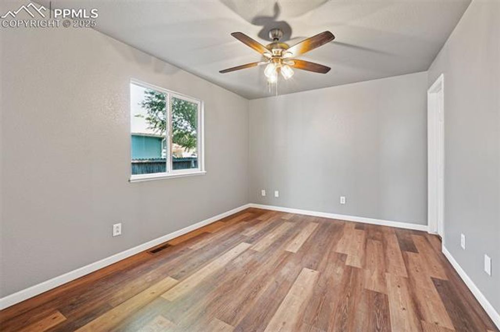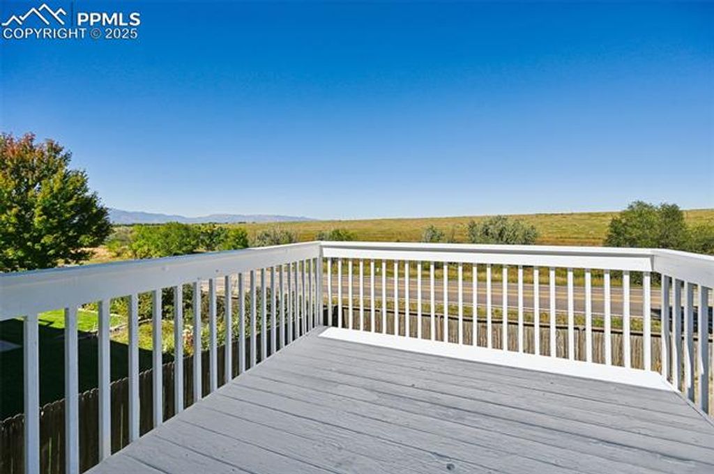 Breathtaking mountain views as well as the serenity of Blue Stem Open Space directly behind and Big Johnson Reservoir not far from this beautifully remodeled 3-bedroom, 2-bathroom home (with a full unfinished walkout basement"”perfect for future expansion or extra storage), makes this home a stand out! With a freshly painted exterior, this home offers a warm welcome home after your work day. Inside, you'll find tasteful, modern upgrades throughout. The main level features brand-new luxury vinyl plank flooring, creating a seamless look. The kitchen countertops have been upgraded to granite. The space now flows effortlessly into the living area, thanks to a newly remodeled open-concept layout"”ideal for entertaining or relaxed everyday living. Both bathrooms have been thoughtfully upgraded with new vanities, new countertops and new tile in showers. Also upgraded are new lighting fixtures that add a contemporary touch throughout the home. Step through the sliding glass doors onto the deck and soak in uninterrupted prairie and mountain views"”a perfect spot for morning coffee or evening sunsets. With main level living, beautiful finishes and unbeatable views, this move-in ready home checks all the boxes. Don't miss your chance to own this Colorado gem located conveniently less than 20 mins to Peterson Space Force and Ft Carson bases and easy access to shopping and I-25.