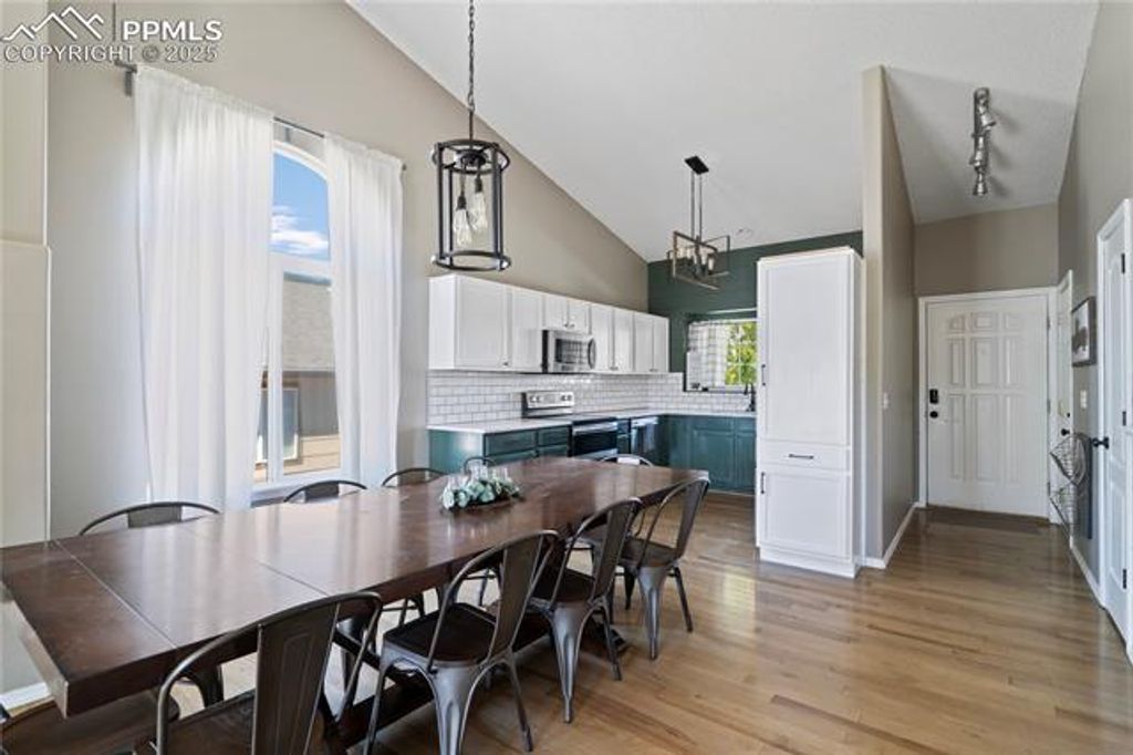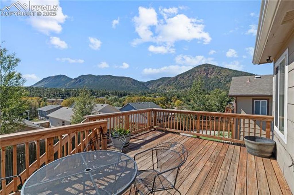 Welcome to this fantastic, updated 5 bed rancher with remarkable views in historic Palmer Lake! Located on a quiet cul de sac, you will enjoy peaceful tranquility! The covered front porch is ideal for your rocking chair! As you step inside you will notice the gleaming engr.'d. wood flooring & vaulted ceilings! The great room space offers connection when gathering & makes entertaining a breeze! Updated kitchen with quartz counters, stainless appliances, & trendy subway tile backsplash! The dining space has big windows & room for a table that seats 10! The living room features a gas fireplace for cozy evenings and it walks out to the deck! Central air! Two primary suites! A primary bed w/en suite 3/4 bath, 2 more beds, plus an updated full bath complete the main level. The garden-level basement allows the natural light in! The spacious rec room has plenty of space for games and movies! The primary suite has an en suite bath with gorgeous granite double sinks, high-end cabinetry and a custom tile shower! Another bedroom and laundry space finish out the lower level! Modern lighting package throughout adds style to your decor! Attached 2-car garage! The spacious, south-facing deck perfectly hosts the breathtaking views of the nearby mountains and the Palmer Lake Star! The backyard is fenced for privacy and pets! Plant a garden, raise chickens & enjoy daily wildlife visitors! No covenants or HOA! Located within walking distance to parks, great restaurants & the Palmer Lake Recreation Area where you can enjoy paddle boarding, fishing, disc golf, pickleball, ice skating & more! Located just a few blocks from Nat'l. Forest with miles and miles of trails for hiking, biking or exploring! Engage in events and small-town traditions that foster community like the .5K Donut Run or Yule Log! Award-winning Lewis-Palmer Schools & easy access to I-25! This home has been used as a short-term rental; ratings and manager can be retained! This is the opportunity you have been dreaming of!