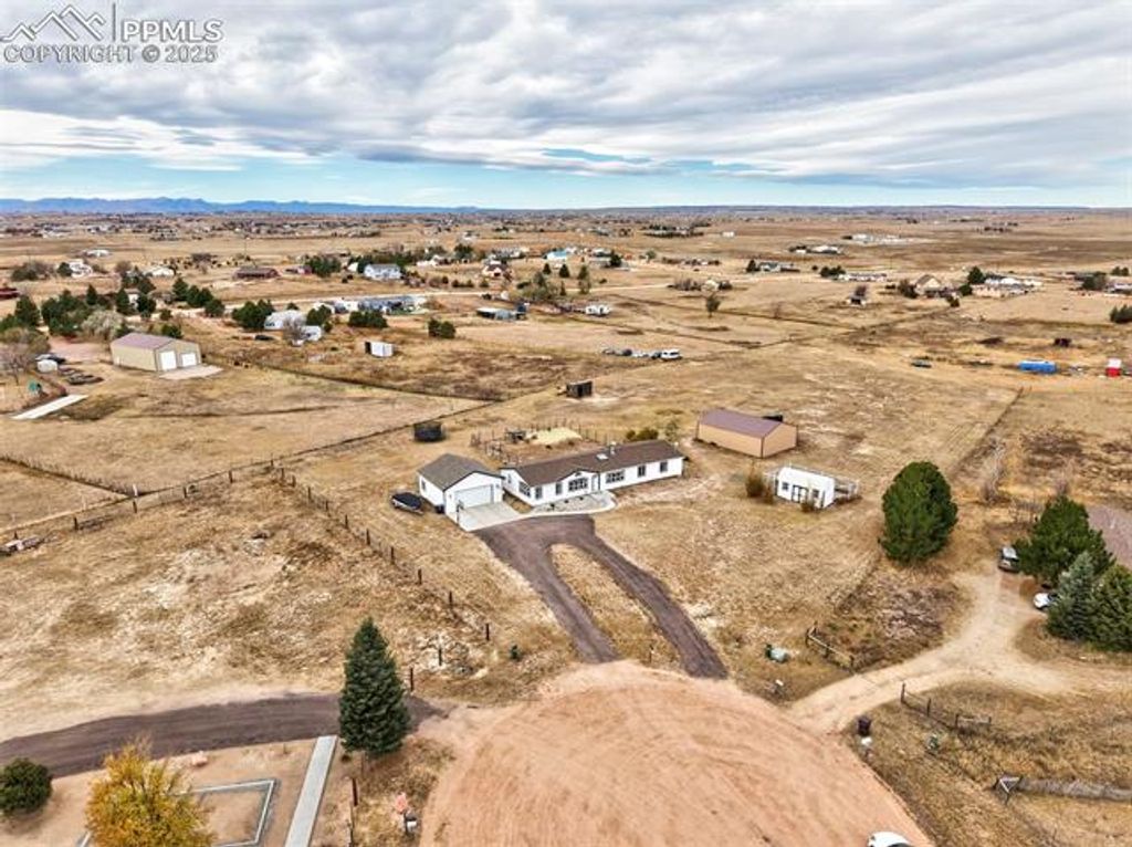 This beautifully cared-for 4-bedroom, 3-bath home offers 2,052 square feet of inviting living space set on just over 3 acres of peaceful Colorado countryside. Originally built in 1995 and thoughtfully updated throughout the years, it perfectly blends classic character with modern comfort. The open-concept layout features a bright living area anchored by a cozy wood-burning stove"”an ideal gathering spot on cool Colorado evenings. The spacious kitchen flows seamlessly into the dining area, creating a warm and functional space for everyday living or entertaining. Two of the bedrooms are connected by a convenient Jack-and-Jill bathroom, providing both privacy and practicality for family or guests. Recent updates include updated appliances (2025), a new water heater (2025), exterior paint (2022), a new vapor barrier in the crawl space (2025), and a new concrete driveway (2024), enhancing both comfort and curb appeal. Step outside to enjoy breathtaking 360-degree views of wide-open skies and distant mountain peaks"”the perfect backdrop for morning coffee or colorful sunsets. The expansive 3.10-acre lot provides endless opportunities for gardening, recreation, or future projects. It's already set up for your goats and chickens with an established goat pen and chicken coop, and also features a large workshop for hobbies, storage, or workspace needs. Conveniently located near Falcon and just a short drive from Colorado Springs, this home offers the serenity of country living with easy access to everyday amenities"”truly the best of both worlds.