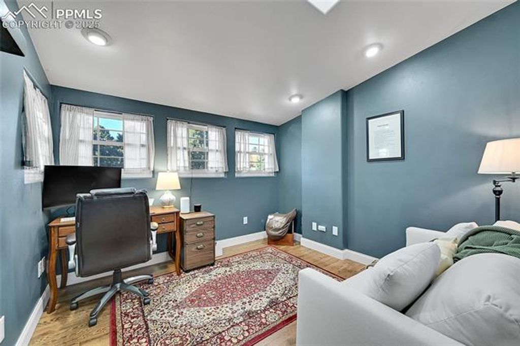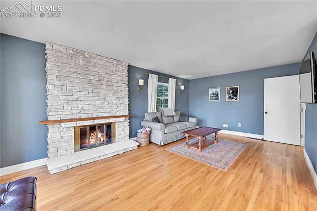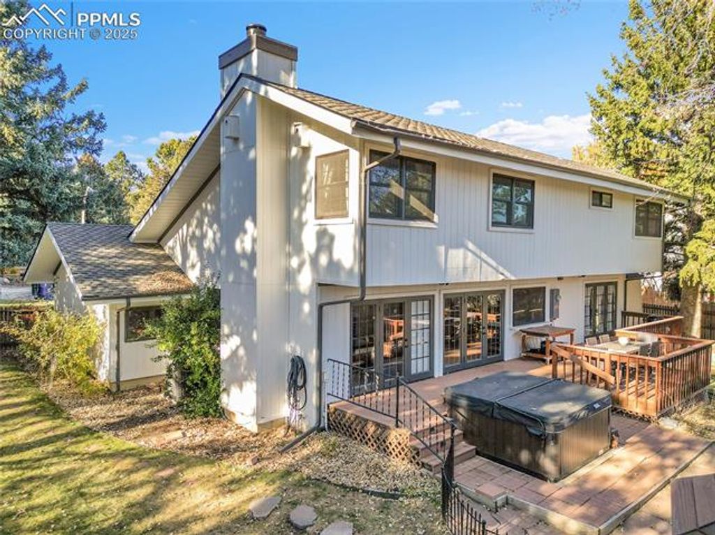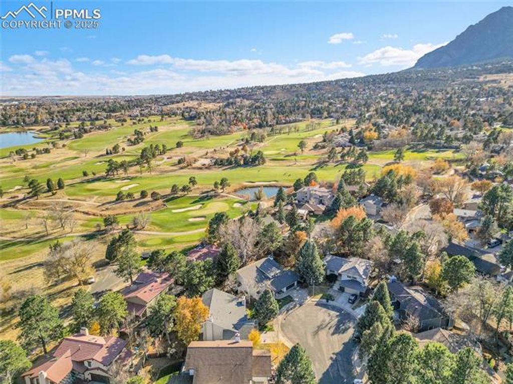 Located in a quiet cul de saq with a peek a boo view of the ninth tee, the pond from the Country Club of Colorado and in an award winning Cheyenne Mountain School district 12. When you walk in the door it feels like home, you walk into a gracious entry with an open stair case to the bedrooms upstairs with new hardwood throughout the second level. The living room has wood floors that run throughout the main level, vaulted ceilings and skylights making the home feel open and spacious. The dinning room has a fully equipped wet bar and walks out to the deck and large yard. The home has two fireplaces. The fireplace in the living room has been plumbed for gas but never converted and is still wood burning. The fireplace in the family room has been converted to gas for convenience, with a newly refinished mantle and rock face. The master upstairs has a window that overlooks the living room, but more importantly the fireplace giving it a cozy feel on cold Colorado nights. The office, which can be a bedroom has been added and connects to the attic for additional storage. There really isn't anything that will keep you from falling in love with this home! Come see why!