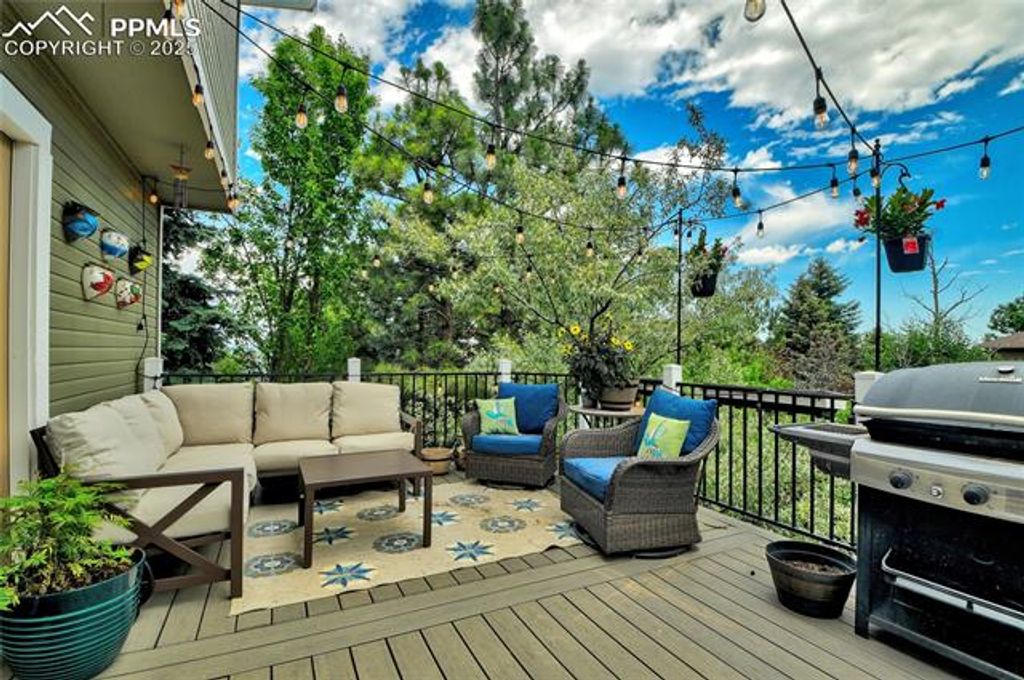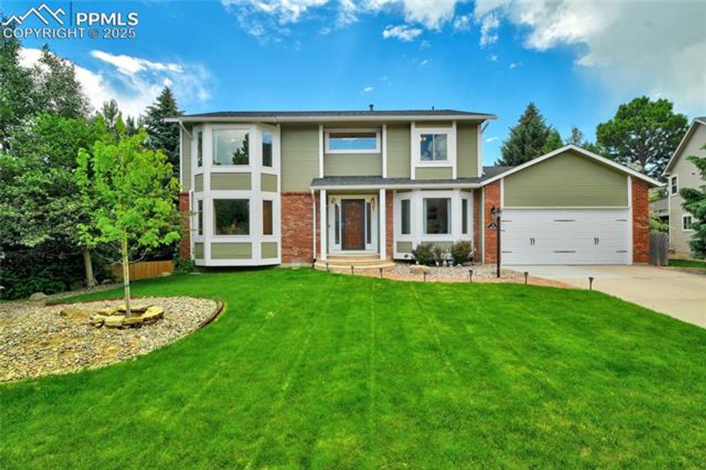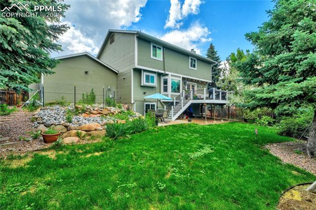Beautiful home in the Broadmoor Bluffs area. This home features vaulted ceilings, hardwood floors, plenty of light and a lovely spiral staircase. The kitchen is open to a living area, has stainless steel appliances and has a built-in island and breakfast bar. The home has 5 spacious bedrooms and 4 bathrooms. The primary bedroom has amazing views of the mountains and has a walk-in closet and a five piece bath. Recent upgrades: all bathrooms except for the primary bedroom bath have been recently remodeled and new carpet throughout the home. The backyard is fenced, has large trees, and a composite deck which makes it perfect for entertaining. Don't miss this one!