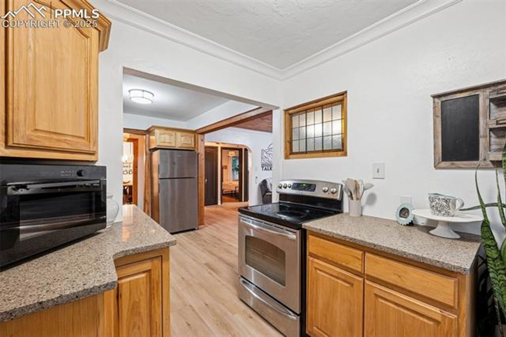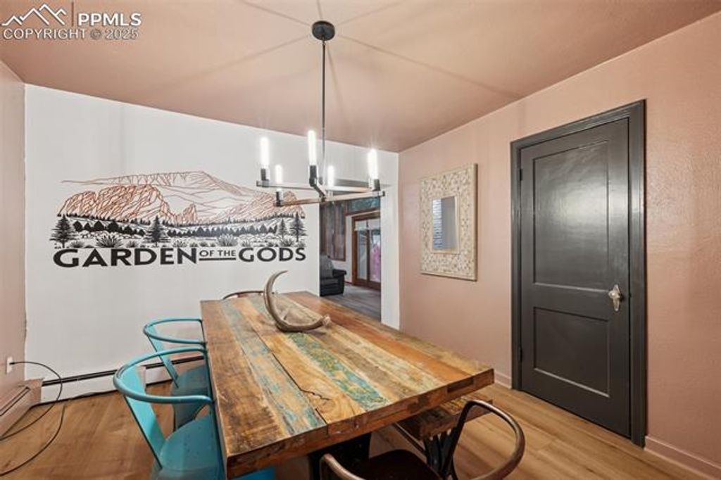 Welcome to this hidden, quiet oasis, on quiet, no-outlet street, tucked between Manitou Springs, Old Colorado City, and Garden of the Gods park. Step inside to appreciate the warmth and style of this special home. The street provides access to all that Garden of the Gods has to offer, such hiking, biking or horseback. Trailheads only two blocks from the home! And only 1.25 miles to the main Garden of the Gods by trail. Lots of natural wildlife in the area, including turkey, bear, and deer. This home features a lock off 2 bedroom/1 bathroom unit that is currently used as a short term rental. (Can be used as a short term rental as long as you occupy part of the home for half the year or more- please confirm with the short term regulations of Colorado Springs) would make a great in-law suite, long term rental, extra living space or guest house. This space has its own entrance, driveway and outdoor space with private hot tub. However, it is easily integrated into the current home space. Heating is a boiler system, and the mini-split system provides plenty of cooling. This home features a total seven bedrooms, three baths, (including the 2 bed / 1 bath lock-off unit) and lots of space and privacy for everyone. Large lot, and fenced front and back yards. Large red rock formation visible from the back yard. So many upgrades including new roof, new LVP flooring, new mini splits (A/C and heat), granite countertops, hot tub, home garage gym, exterior storage shed, new exterior paint, new light fixtures, Garden of the Gods mural, custom fire pit and porch swings, and multiple outdoor entertaining areas. Parking is never a problem due to the oversized, one-car attached garage, PLUS the 6-7 off-street parking spots. This is a truly one-of-a-kind home that doesn't come along every day. Don't wait to see this one!