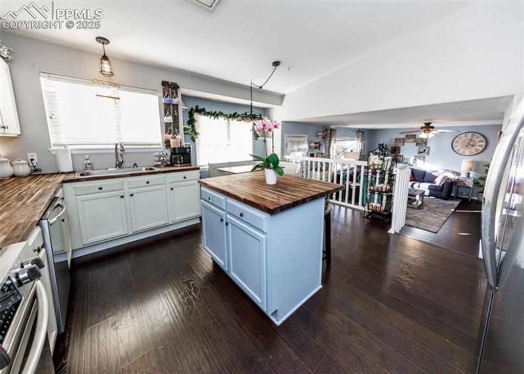 Welcome to this immaculate 3-bedroom, 3-bathroom tri-level home nestled in the highly sought-after, welcoming community of Founders Village. Step inside and be greeted by soaring vaulted ceilings and a formal dining room, providing plenty of room to spread out when hosting friends and family. The kitchen is a true focal point, showcasing custom butcher block countertops and a large built-in island, perfect for the home chef. The lower level is where you'll want to stay, offering a wonderfully cozy atmosphere. This main and lower level boasts durable, easy-to-clean wood laminate flooring throughout. A versatile basement bonus room is currently being used as a fourth bedroom but could easily be transformed into a bright, rec room or private home office. The upper level features all three bedrooms, including the private master suite with a traditional en-suite bathroom, plus two secondary bedrooms that share the hallway bathroom. The backyard is an absolute gem, set up perfectly for year-round entertaining and enjoyment including a stunning custom-built pergola and adjacent patio, mature landscaping, a swing set, a convenient storage shed, plus hot tub hookups for future relaxation. *To see more, click on virtual tour link or click on documents for floorplans. Founders Village is known for its peaceful, tree-lined streets and scenic views of the Front Range and Rocky Mountains. As a resident, you'll enjoy: Over five miles of trails connected to extensive open spaces, access to local parks (Founders Park and Matney Park) with playgrounds, playing fields, an inline rink, The Centerpiece Community pool, The Ridge House clubhouse, and fitness classes for everyone. Conveniently situated just 35 miles South of Denver and 40 miles North of downtown Colorado Springs, this is the ideal place to call home. Schedule your showing today and experience the best of community living!