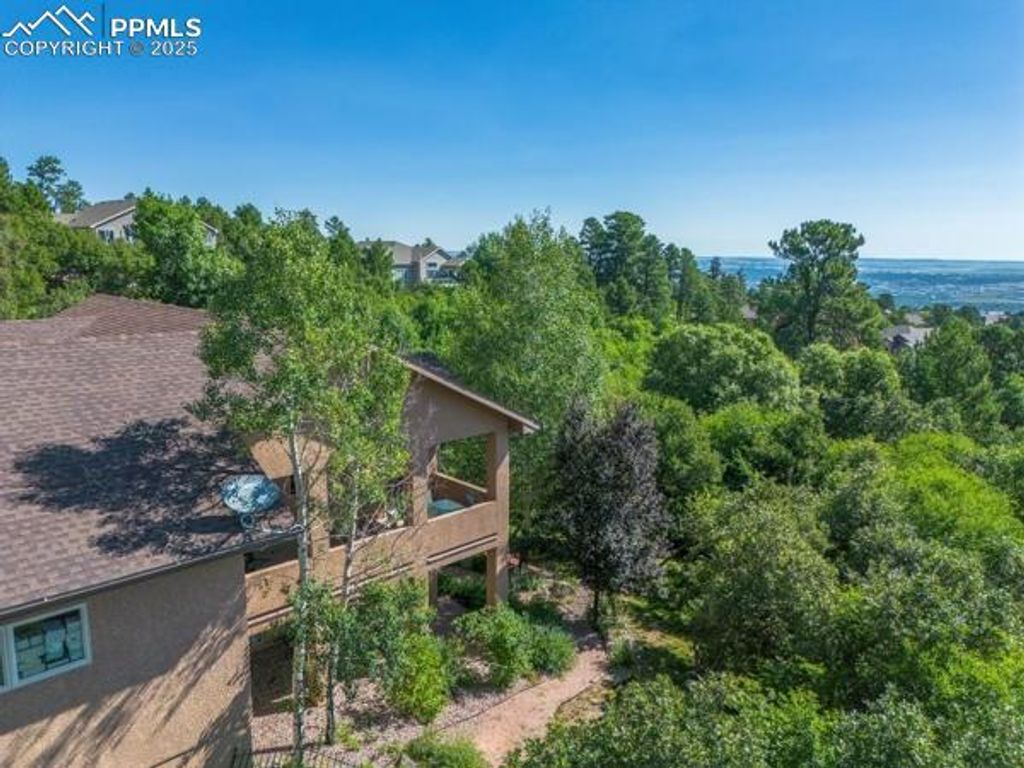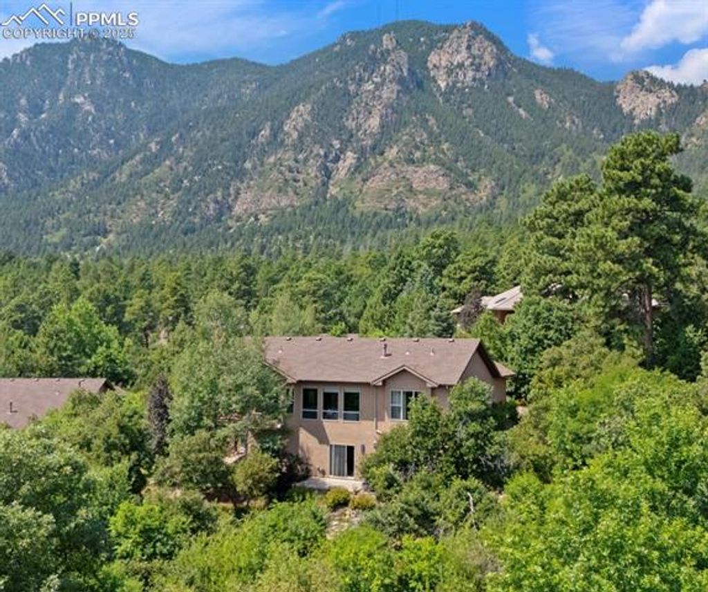 Nestled in the highly coveted Broadmoor Spires neighborhood, this stunning custom home blends luxury, privacy, and natural beauty. Located in the award-winning Cheyenne Mountain School District, it sits on a heavily treed, secluded lot with breathtaking city and mountain views, making it one of the area's finest homes. Built by an award-winning builder, this thoughtfully designed home boasts an open floor plan that perfectly balances sophistication and comfort. The main level welcomes you with gorgeous hardwood floors, large windows, high ceilings, and a seamless flow ideal for entertaining. The spacious living room features built-ins and a striking floor-to-ceiling gas fireplace, creating a warm, inviting ambiance. Step outside to the large covered deck, perfect for relaxing and taking in panoramic views while wildlife roams nearby. The chef's kitchen is beautifully appointed with stainless steel appliances, granite countertops, and custom cabinetry, offering both style and functionality. The luxurious primary suite boasts hardwood floors, lots of natural light, and an ensuite bath w/ elegant travertine and custom tile work. Downstairs, the walk-out basement opens to a private, covered patio surrounded by lush trees and landscaping, providing a peaceful retreat year-round. Another floor-to-ceiling gas fireplace enhances the the living space, ensuring warmth and charm. The basement also features three expansive bedrooms, offering exceptional space for guests or family members. The convenient main-level laundry area is spacious and boasts abundant cabinetry. This remarkable home offers superior privacy while still being close to top-rated schools, shopping, and military installations. Expansive windows capture stunning views from every room, and southern exposure provides abundant natural light. With a tranquil setting that feels like living in the mountains, this is a rare opportunity to own a true sanctuary in Broadmoor Spires.