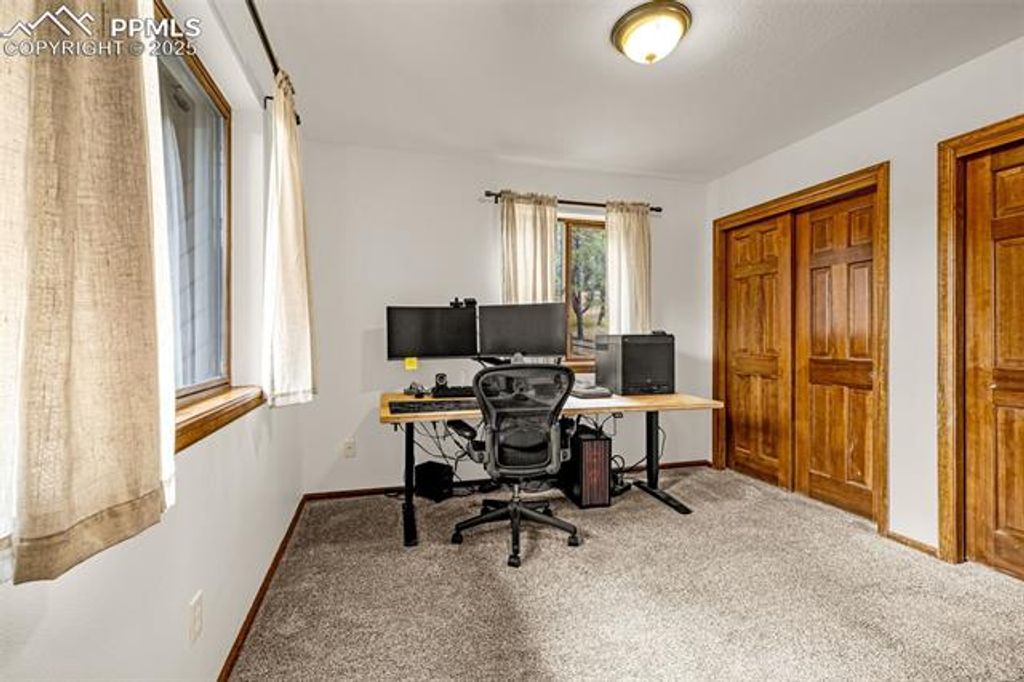 Welcome to Woodland Park living at its best. Perfectly positioned home to enjoy mountain views from the areas you hang out in most including the deck! This one of a kind tri level home blends mountain charm, modern upgrades, and views that will stop you in your tracks. With stunning pikes peak views from every level, this 3-bed, 2-bath, 2,213 sq ft home sits on a spacious 0.8-acre lot that feels private yet close to everything. Inside, you'll find thoughtful updates throughout "” luxury vinyl plank flooring, new tiles in the sunroom, motorized shades, and replaced skylights that fill the home with natural light. The lower level invites cozy evenings by the wood-burning fireplace and a hot tub area with mountain views that feels like your own spa retreat. Upstairs, the primary suite features a massive soaker tub, dual vanities, and a freestanding shower. The kitchen offers granite counters and stainless appliances, while the heated and cooled garage adds a utility sink with hot water and a mini-split system (negotiable). Step outside and enjoy true mountain living "” a new 200 sq ft shed with power conduit, an additional powered shed, fully replaced fencing, and a completely encapsulated crawl space for peace of mind. The sellers have also had the home painted, the septic tank replaced along with the other updates made. The large, level yard gives you room to breathe, play, and soak up the fresh mountain air. Located just minutes from downtown Woodland Park's shops, coffee spots, and restaurants, yet surrounded by trails, wildlife, and forest views, this home perfectly balances comfort and adventure. No HOA. Move-in ready. Views for days. Come experience why life just hits different in Woodland Park.