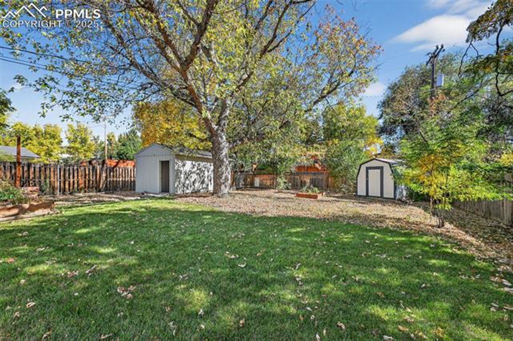 This delightful 3-bedroom, 2-bathroom brick home blends timeless charm with modern updates in a beautiful, tree-lined neighborhood. Surrounded by mature trees in both the front and back, it welcomes you with classic curb appeal and an inviting atmosphere. The main level features natural warmth with oak hardwood floors and a bright kitchen with solid-surface countertops, crisp white cabinetry, and corner windows that fill the space with natural light. The remodeled main-level bathroom is stunning and showcases antique-style tile flooring, a barn-door-style entry to a free-standing shower, a custom vanity topped with quartz, and a decorative shiplap accent wall. Upstairs, a charming oak staircase leads to two spacious bedrooms and a full bathroom that has also been updated. Step outside to enjoy the covered patio overlooking the lush bluegrass yard"”perfect for relaxing or entertaining. Let your imagination run wild with the endless possibilities in the expansive back yard, which includes detached one-car garage/workshop with power, a convenient backyard storage shed, fire pit and garden beds. Centrally located just minutes from Palmer Park, shopping, dining, and less than 10 minutes from downtown Colorado Springs, this home offers character, comfort, and convenience in a truly special setting.