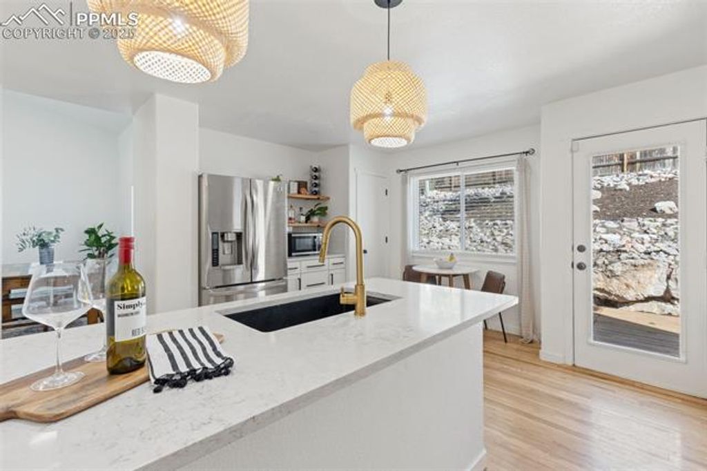 Jackpot! Sharply Updated & Rare 5Bed/3Bath/2Car 2-Story Home Meticulously Maintained and Superbly Nestled on the Northeast side within the Very Popular Springs Ranch Neighborhood- just moments (or steps) from all the Amenities and Fun the Powers Corridor provides**Yes! There are Numerous Bells & Whistles to enjoy from top to bottom of this Exceptional home boasting High End Finishes and Smartly Executed Designs**Enter the front door and be WOWED by the Soaring Ceiling, Glistening Hardwood Floors, Fresh Paint, and Designer Lighting**The renovated Kitchen Proudly Displays Quartz Countertops, an upgraded Stainless Steel appliance suite w/Hood, Shaker White Cabinets complimented by a Custom Subway Tile Backsplash Perfectly Accented by the Floating Wood Shelving, and a Pantry to Boot**Cozy Main Level Family Room Adjacent to Kitchen comes complete with Walk-out and Gas Fireplace**The Separate Formal Dining & Living Room Space provides the Elegant Space needed to enjoy Good Food & Wine and the Company of Great Friends**Robust Upper Level provides 3 Wonderfully Sized Supplemental Bedrooms along with the Spacious Primary Suite**Once described as "the Sanctuary", the Primary Suite features a Vaulted Ceiling, plenty of Space for Sitting/Office Area, and a Brilliantly Remodeled Attached Private Bath w/Generously Sized Custom Shower and Spacious Walk-in Closet**The Bonus Finished Space of the Basement Delivers an Additional Comfortable Family/Rec. Room, Large 5th Bedroom, and a Roughed-in Bathroom that could Easily be completed for 2nd Primary Suite**The Beautiful Stained Rear Deck, String Lighting, Huge Boulder Accents, and Low Maintenace/Pet Friendly Landscaping Truly Creates a Terrific Outdoor Space to Relax & Enjoy for ANY Occasion - Did we mention the Super Easy Access to ALL Military Bases, Medical, Schools, Biking/Walking Trails, Parks, Shopping, Entertainment, and the Best of Colorado's Outdoor Fun? This Remarkable Property is Certainly Worth a Peak!