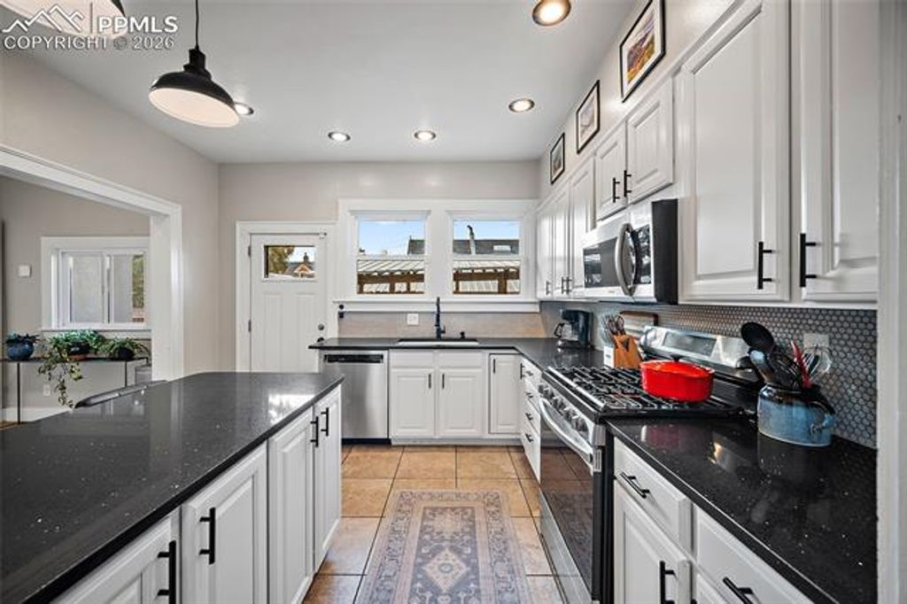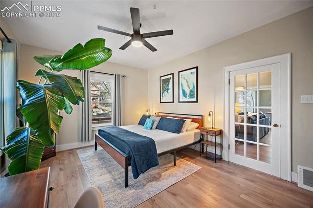 On one of the Old North End's most enchanting streets"”where children flock for Halloween and holiday lights transform the block into pure magic"”sits a home that captures everything special about Colorado Springs' most coveted neighborhood. Welcome to 21 E Washington Street, where history whispers through every room. Built in 1903, this isn't just a house; it's a story waiting to embrace you. Original millwork and beautiful bay windows create authentic period charm while flooding rooms with natural light, offering front-row seats to the neighborhood's seasonal enchantment. This historic beauty has been thoughtfully modernized without losing her soul. Fresh LVP flooring graces the main level (original hardwoods lie preserved beneath). In the kitchen, jeweled dark quartz countertops catch the light, a new gas range beckons your inner chef, and custom pantry storage meets every need. Step from this culinary haven onto your private composite deck for effortless indoor-outdoor entertaining, then back through the large mudroom with main level laundry"”a rare luxury in historic homes. The main level flows beautifully with two generous bedrooms and an updated full bath featuring dual vanities and elegant ceramic tile. Upstairs, discover a versatile suite large enough for both sleeping and living"”imagine a sitting area here, a reading nook there. The fully renovated bathroom showcases double vanity and custom tilework, creating your personal spa retreat. Minutes from downtown's energy, Old Colorado City's eclectic charm, and Manitou Springs' artistic soul. Walk to Colorado College or Monument Valley Park. Yet on this quiet street, neighbors know each other's names and kids actually play outside. Privacy fencing adds quaint outdoor charm while the attached garage"”unique for this neighborhood"”features insulated finished walls, gleaming epoxy floors, and heat. This isn't just a home. It's a lifestyle. Come discover why the Old North End keeps winning hearts.