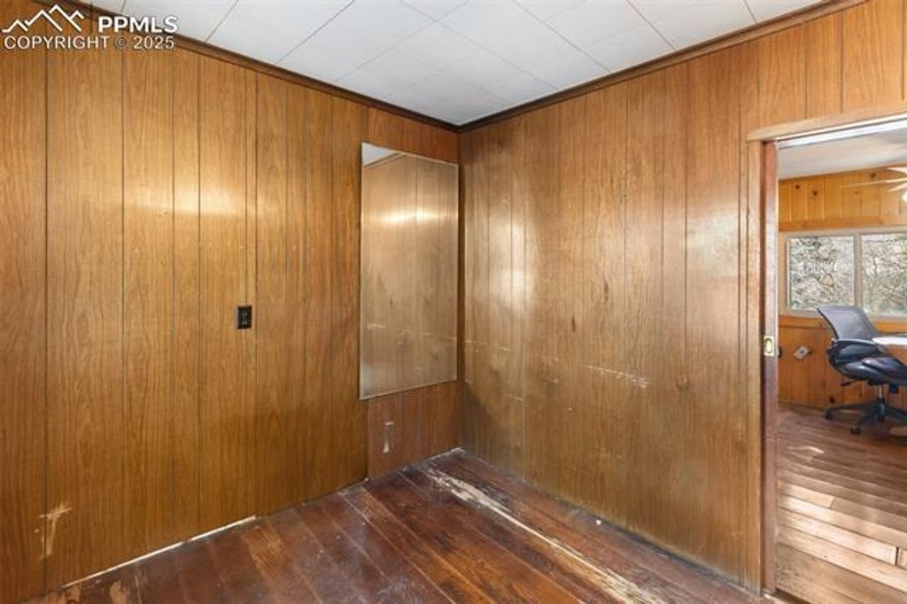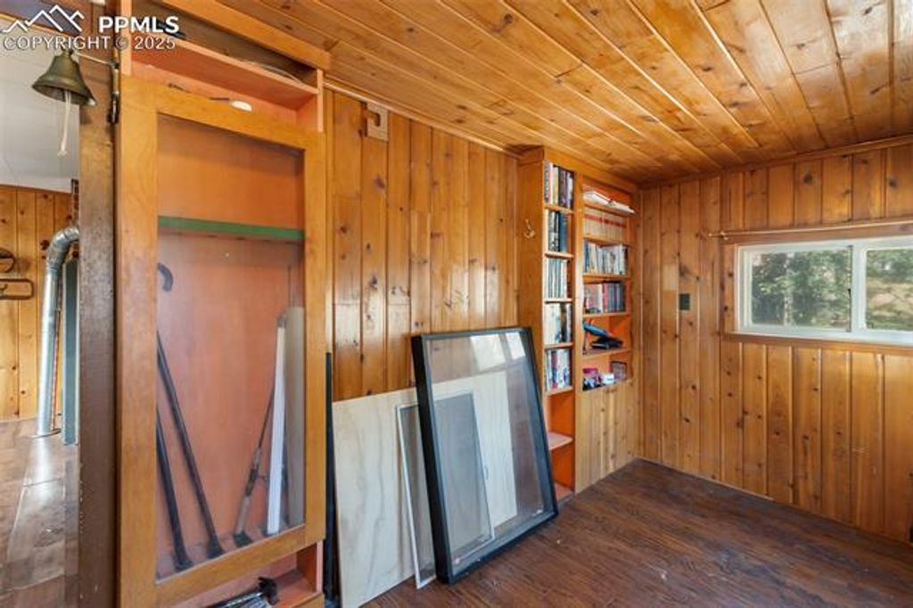 Charming mountain cabin in the heart of Green Mountain Falls! This 2-bedroom, 1-bath home offers classic Colorado character with wood-paneled walls, cozy living spaces, and plenty of natural light. The kitchen features rustic original cabinetry and large windows that capture peaceful views. Nestled among mature trees and just minutes from downtown Green Mountain Falls, parks, and hiking trails, this home provides an ideal retreat or full-time residence. Ready for you to put your own finishing touches on the home!
