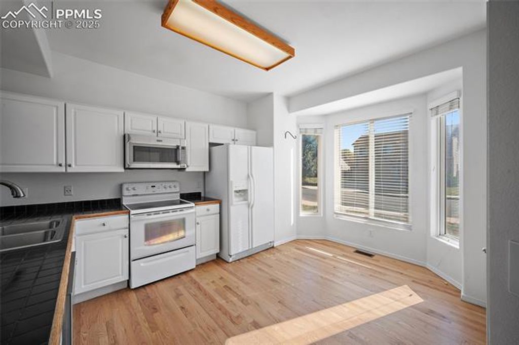 Welcome to your new home "” a bright and inviting 2-story home with a walkout basement in the heart of Crestline Heights! Enjoy exceptional convenience with quick access to both Academy Blvd and Powers Blvd "” just 10 minutes to Downtown Colorado Springs, 15 minutes to Fort Carson, and 15 minutes to Peterson SFB. Set on a 6,500 SQ FT lot with a fully fenced backyard and beautiful Front Range views, this home offers space, comfort, and functionality. Step inside to find vaulted ceilings, natural wood flooring, and an abundance of natural light. The kitchen features a breakfast bar, pantry, and plenty of cabinet and countertop space. The living room is warm and welcoming with its soaring ceilings, gas fireplace, and direct access to the wood deck "” perfect for enjoying sunsets over the mountains. Upstairs, the primary suite includes an ensuite bath with dual vanities, a tub/shower combo, and a large walk-in closet. Two additional spacious bedrooms, a full bath, and a conveniently located laundry area complete the upper level. The finished walkout basement adds even more living space "” ideal for a second family room or entertainment area "” along with a large bedroom and ¾ bath. With 4 bedrooms, 3.5 bathrooms, and a layout designed for both comfort and versatility, this home blends character, convenience, and value in one exceptional package