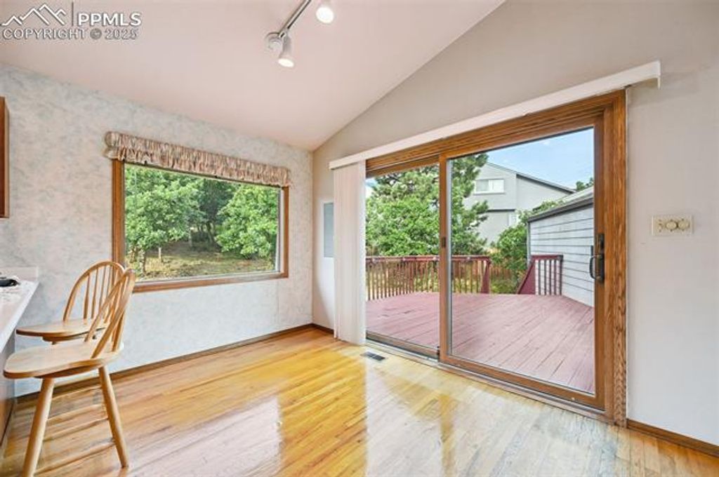 Spacious Home in Desirable D-12 School District This beautifully designed home offers a fantastic layout with large open rooms, vaulted ceilings, and a main-level primary suite. A marble entry and solid 8-panel wood doors add timeless character, while the open living room with its stone fireplace and soaring ceilings creates an inviting gathering space. The kitchen features Corian countertops, newer stainless steel appliances, and a walk-out to a deck"”perfect for morning coffee or evening relaxation. The lower garden level provides three additional bedrooms, two family room areas filled with natural light, and plenty of versatile space for work or play. Enjoy peace of mind with newer mechanical systems, a low-maintenance natural yard, and private outdoor living on both front and back decks. All of this is located in the sought-after D-12 district, close to Fort Carson, NORAD, Cheyenne Canyon, excellent schools, and miles of hiking trails. A rare opportunity to own a spacious, well-built home in a prime location!