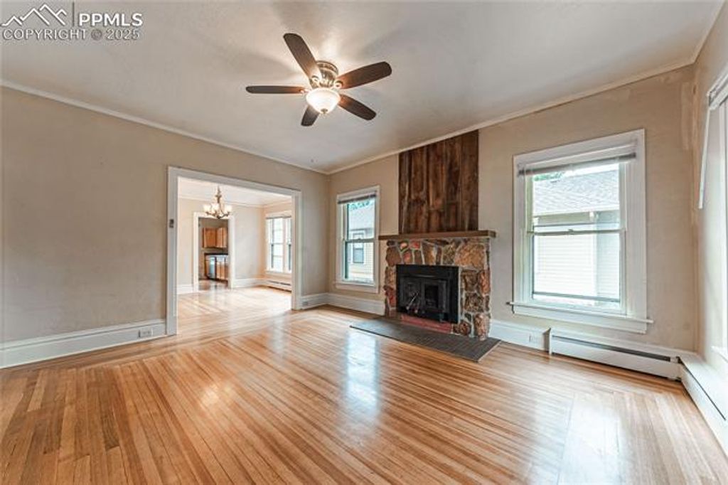 Downtown Craftsman Style Rancher with absolutely Gorgeous Picture Framed Hardwood Floors! This House really has Character, and the Location is prime just East of Colorado College and walking distance to Downtown or even the Shooks Run Trail. Property needs a little TLC here and there as it has been a rental property for a bit. Terrific Sunroom with wood wainscotting and panel windows is attached to the primary bedroom. High ceilings throughout the main level. Hot water Heat! OFF-STREET PARKING in the rear and away from the alley. This property is a real treasure and would make a great home now (with future income potential as a CC rental), or, has the potential for immediate investment upside.
