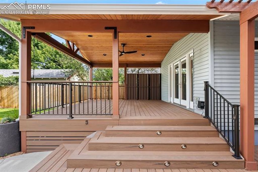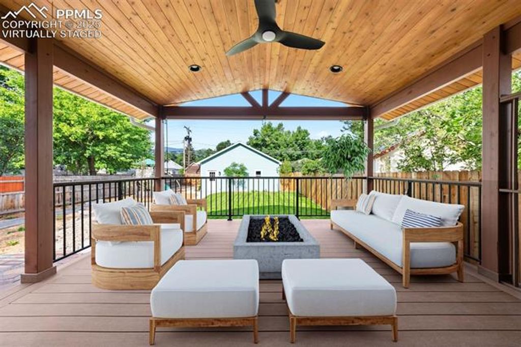 Lovingly UPDATED and UPGRADED charming bungalow tucked away in the heart of the beloved Patty Jewett neighborhood * Coveted STEELE Elementary School * Upgrades galore (all NEW references below are to work completed 2022-2024 including applicable proper permits in Final status) * NEW fully covered Trex deck (with built-in lighting and fan) with connected pergola bonus deck - all created by Rocky Mountain Custom Decks - it is gorgeous - must be seen in person to be fully appreciated! * NEW oversized two-car detached garage (with 8' x 16' foot door and workshop area) including Emporia EV Charger + bonus bike pulleys + bonus upper storage * Newly remodeled kitchen with Café appliances + herringbone subway tile backsplash + farm sink * NEW Milgard windows * NEW Graber top-down / bottom-up honeycomb shades * NEW Hunter Douglas top-down / bottom-up Roman shades * NEW electric fireplace (with heat + remote control + wall switch) plus gas fireplace in front room * NEW electrical panel * NEW water heater * NEW lift station * Newly refinished hardwood floors * Newly cleaned ducts * Thoughtful and efficient landscape design with drip system in front and back + fully fenced back yard with just the right amount of lush green sod + sidewalk to garage + castle-turret playset * Humidifier * Washer and dryer included * Covered entryway with adjacent brick paver patio * Wonderfully convenient location amidst shady tree-lined sidewalks and just a short stroll to Steele Elementary School + the historic Patty Jewett Golf Course (built in 1898 - the 3rd oldest public golf course west of the Mississippi and one of the most played courses in Colorado!) including the famous Patty Jewett Bar & Grill...plus Shooks Run Trail, Bonforte Park, Bon Shopping Center, Good Neighbors Meeting House, STIR Coffee & Cocktails, Joey's NY Pizza, Sasquatch Cookies, plus just a few minutes away from downtown Colorado Springs *