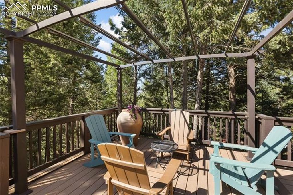 Welcome to your mountain dream home in the heart of Woodland Park! Tucked away on over half an acre on a wooded lot situated on a quiet cul-de-sac, this beautifully maintained 4-bedroom, 3-bathroom residence offers a total square footage of 3,340 comfortable living space, combining peaceful mountain living with thoughtful modern upgrades. Inside, you'll find a warm and spacious layout featuring stunning wood floors and new carpet in the basement and fresh paint throughout. The main level flows effortlessly from the cozy living room with a fireplace to the dining area and open-concept kitchen, highlighted by a huge walk-in pantry, gorgeous stone countertops, and solid wood cabinets. Whether you're hosting a dinner party or enjoying a quiet evening in, this home was designed for comfort and connection. Step out onto the expansive composite wrap around deck ideal for entertaining friends and family, so private and feels like your up in the trees. With four generously sized bedrooms and three baths, there's space for everyone to feel at home. Additional highlights include an oversized 3-car garage, on-demand gas water heater, two furnaces (one for each level) for energy-efficient comfort, smart wiring throughout, driveway was just newly seal coated, new dual lift pump sewer system installed in September 2023. Also, the unfinished space in the basement is ready to add two additional rooms, bathroom or what-ever your heart desires. Located just minutes from downtown Woodland Park, yet surrounded by nature, this property offers the best of both worlds"”tranquility and convenience. This is a must-see. Schedule a showing today.