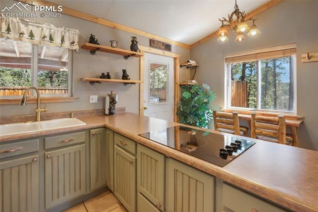 Welcome to your mountain retreat on Handcart Circle in Colorado Mountain Estates! Sitting on nearly half an acre, this charming one-bedroom, one-bathroom home is the perfect mountain getaway, ideal for a short-term rental, or a full-time residence, currently in use as a successful short term rental! The open kitchen and living area complete with tile flooring and a gas fireplace. Furniture is negotiable outside of the sale. The level lot is surrounded by towering trees and has a large fenced-in backyard, perfect for relaxation or entertaining, complete with a hot tub. A nice sized shed provides space for outdoor gear, tools, or storage. Neighborhood is covenanted and has community fishing ponds as well! Only 16 Miles to Woodland Park. Close to hiking and nearby Florissant Fossil Beds, Gold Medal trout fishing, and only an hour and a half from Skiing in Breckenridge.