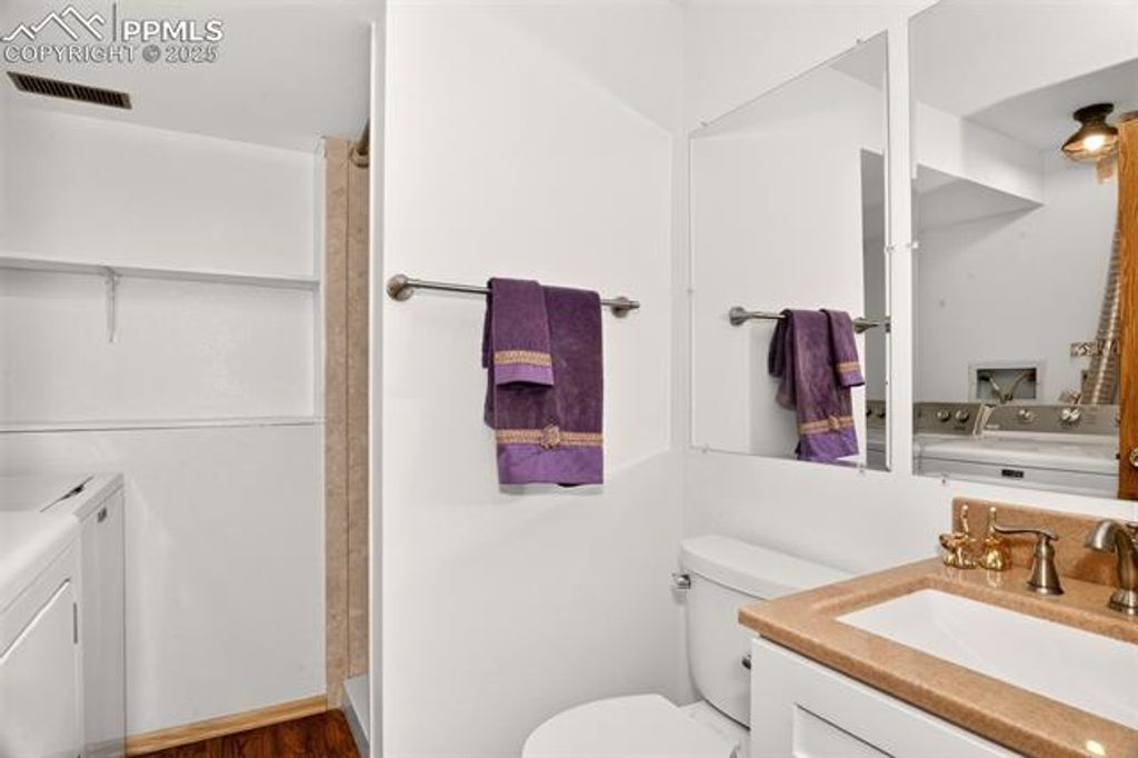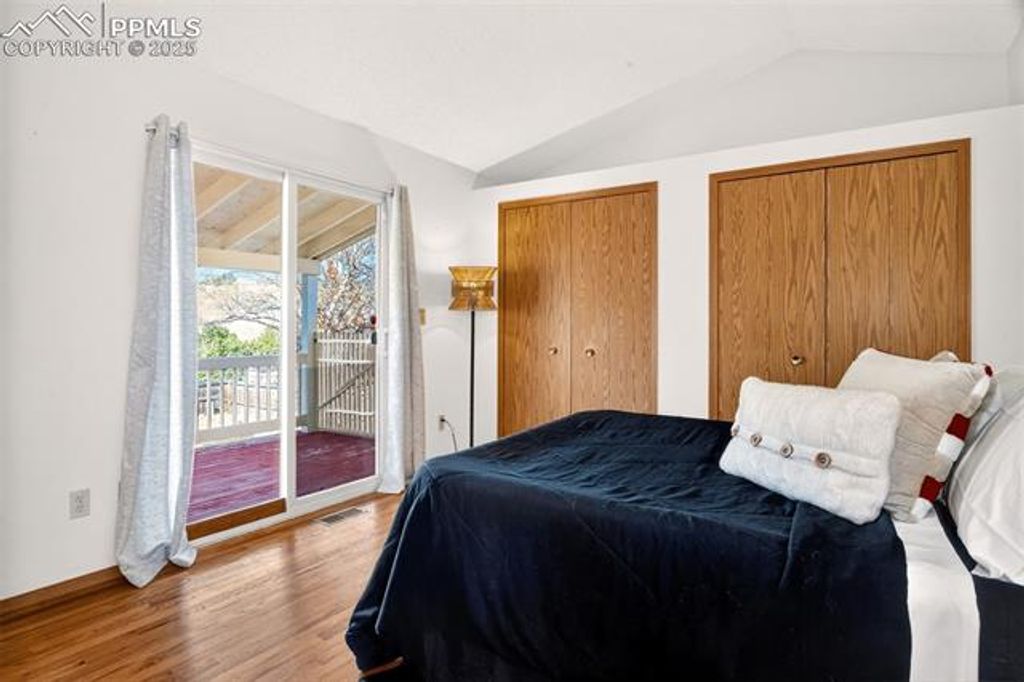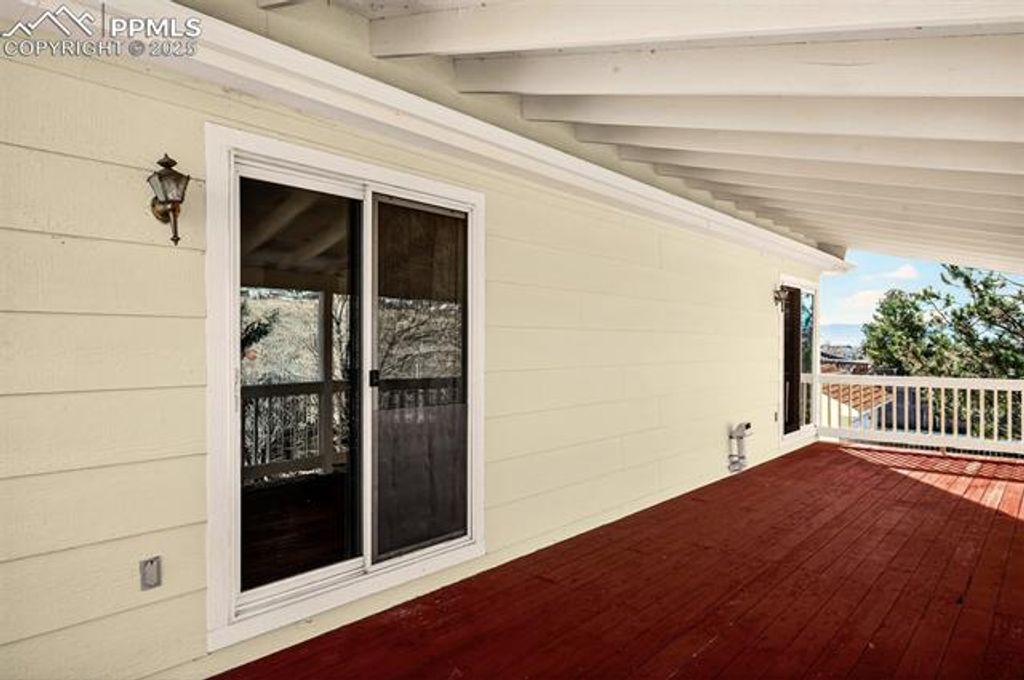 Step into this beautifully cared- for home featuring gleaming wood floors throughout and vaulted ceilings that create an open, airy feel. Sunlight pours into every room, showcasing the home's warm and inviting character. The expansive back covered deck off the 2 upper bedrooms is perfect for entertaining, relaxing or hosting large gatherings with a view of Pikes Peak. The living room has built in bookshelves and a gas fireplace. The lower level family room features a wood fireplace perfect for those chilly Colorado evenings along with a nonconforming third bedroom, ideal for guests or easily used as a private home office. Kitchen has granite counter tops, a pantry and Stainless Steel appliances. Central air conditioning to keep you cool in the summer, 2 car garage features an access door leading directly to the back yard for added convenience. The unfinished basement is ready for your creativity to make the space truly yours.