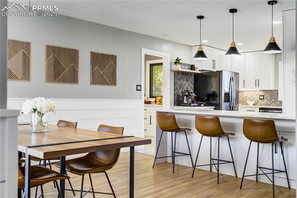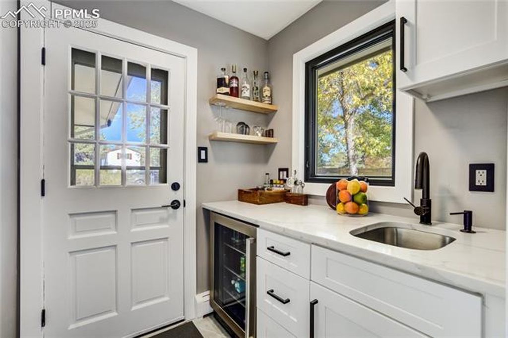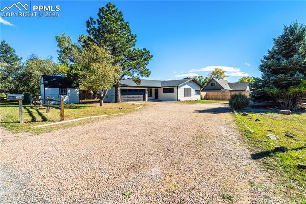 Get ready to fall head over heels for this jaw-dropping, three-bedroom, two-bathroom ultra-modern masterpiece nestled right in the heart of Monument, CO! With those mountain views that'll make you gasp and details that scream "extraordinary," this home's here to WOW you every single day! Perched on a lovely level corner lot, this gem boasts ample off-street parking, a fully fenced backyard, and mature landscaping ready to impress. Check out the spiffy exterior with its fresh siding and trim paint, those snazzy new black Fibrex Renewal by Andersen windows, chic modern lighting, and a brand-new roof! Step inside and prepare to be dazzled by the custom tile entry, flat texture walls and ceiling with stylish 2-tone paint and modern trim, light refinished wood flooring, canned LED lighting, and all the modern fixtures your heart could desire. To your right, a spacious living room with windows framing stunning mountain views, anchored by a floor-to-ceiling fireplace that's wall-to-wall fabulous. Adjacent, discover a sneaky storage/sunroom for all your hideaway needs. To your left, an open dining room with a large picture window and shiplap wainscoting cozies up to a SHOW-STOPPING kitchen. Feast your eyes on the waterfall peninsula island, quartz counters, custom white cabinetry, gas range with hood, chevron tile backsplash, microwave/oven insert, and an oversized fridge. Plus, a handy mudroom with a wet bar and access to the home's attached 2-car garage and backyard. Opposite the kitchen, you'll find a convenient laundry closet, bedroom retreats, and a hall bathroom. The primary bedroom is a sun-drenched delight with an extended closet system and an attached bath featuring a custom tiled shower, modern vanity, and toilet. Just steps away, two spacious guest rooms await, complete with plush carpet and gorgeous backyard views. This home is just minutes from downtown Monument and Monument Lake, offering amazing access to trails, fishing, the highway, & adventure galore!