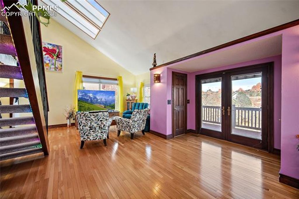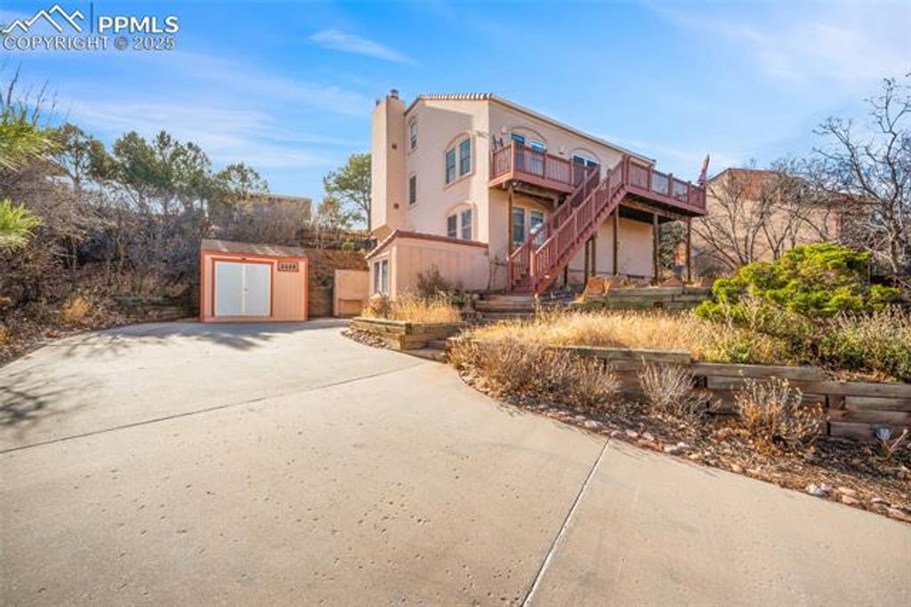 Where Every Hour Is Golden Hour...Welcome to a rare 3 bed, 3 bath sanctuary on nearly a third of an acre in Garden's Edge, a private enclave of only nine homes bordering the world-famous Garden of the Gods. Red rock formations, lush trees, and sweeping views follow you from room to room, deck to deck, and window to window. Enjoy panoramic vistas of Pikes Peak and the Front Range from your back Trex deck. From your full length front Trex deck soak in 360° view of the Kissing Camels, the Siamese Twins, and a dozen other red rock formations. On the north side of the property a series of brick terrace patios create the perfect outdoor setting - summer barbecues, stargazing, and quiet mornings in nature. A gas-grill hookup, fertile vegetable garden, hot-tub-ready wiring, and a charming rock wall elevate the outdoor living experience. Inside, skylit ceilings, whole house a/c, two wood-burning fireplaces, solid oak floors, and dual cloak closets make the living spaces warm and inviting. The open kitchen includes a breakfast bar, gas stove with cast-iron griddle, electric oven, microwave, and pull-out shelving. A full pantry/flex space opens to both patios. The loft offers a bedroom + office, copper sinks, walk-in closet, and private balcony. The basement adds a recreation room with wet bar and kegerator, Pergo flooring, and two additional bedrooms. An extra-large two-car garage includes a workshop, storage, and welding-ready gas line. Two sheds add versatile storage. Also, the stability of being built on a red rock brings peace of mind from settling. The location? Stunningly secluded yet only minutes from grocers, shopping, and loads of local restaurants in Manitou Springs, Old Colorado City, and Downtown. Just 0.2 miles from Garden of the Gods trailheads. In mere minutes, you can be on the trails, hiking among towering sandstone formations. Not just a home - a rare retreat in one of the most scenic corners of Colorado Springs. 3725 Saints Court, a Jewel among the sandstone!