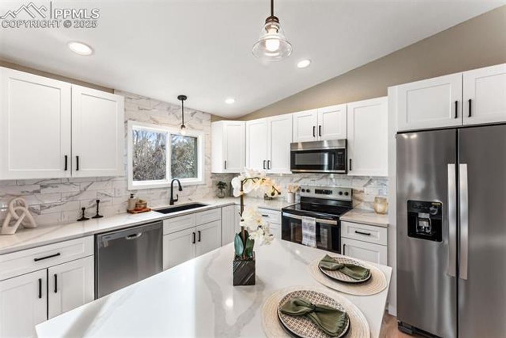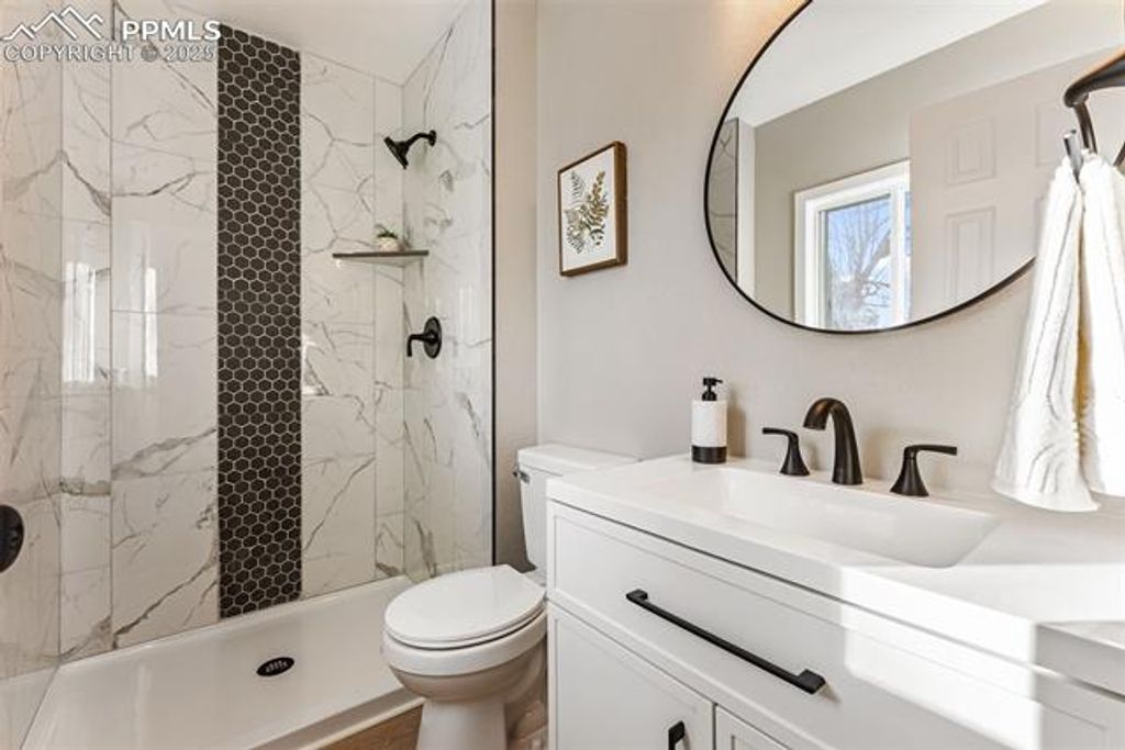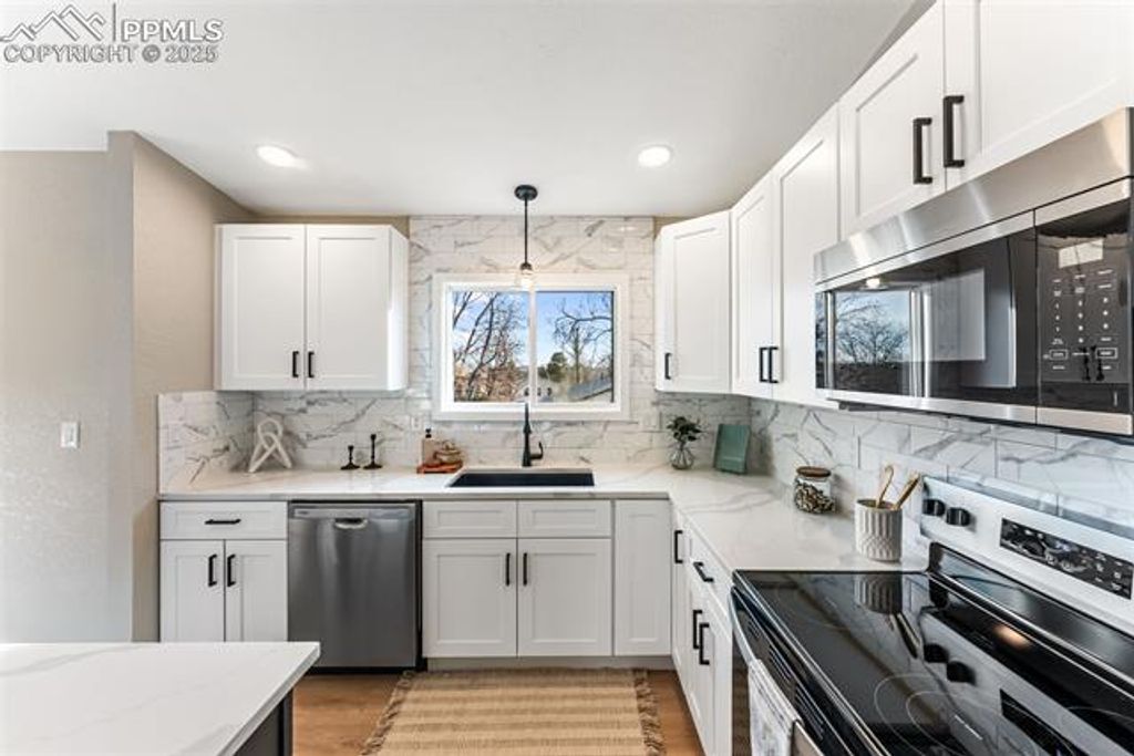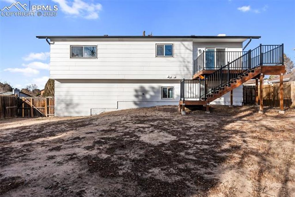 Stunning Bi-Level Home with Modern Upgrades Welcome to this beautifully remodeled 4-bedroom, 2-bathroom bi-level home featuring a spacious 2-car garage. Nestled in a tranquil neighborhood, this residence seamlessly blends modern amenities with timeless charm, offering both comfort and style for today's discerning homeowner. Spacious Bedrooms: Four bedrooms provide ample space for relaxation and personalization. Luxurious Primary Suite: The primary bedroom includes a large walk-in closet, direct access to a jack and gil bathroom. Modern Kitchen: A newly remodeled kitchen equipped with state-of-the-art appliances, sleek quartz countertops, and ample cabinetry. Step out onto the deck from the kitchen to enjoy outdoor dining. Lower Level Retreat: The lower level features a fourth bedroom and a cozy family room with a fireplace"”perfect for chilly winter evenings. Open-Concept Living: The living and dining spaces flow effortlessly, making it ideal for entertaining guests or everyday family life, and vaulted ceilings filter the space with natural light, creating a bright and airy atmosphere. Updated Bathroom: The bathroom has been thoughtfully renovated with contemporary fixtures and finishes. Outdoor Space: A large yard provides a serene setting for outdoor activities and relaxation. Recent updates include new doors, trim, texture, new gutters flooring, paint, a newer roof , and an upgraded electric panel. Prime Location: Conveniently located near the Powers Corridor, this home offers easy access to shopping, dining, and entertainment options. Additionally, it's just a short drive to The Air Force Academy making it an ideal choice for military personnel and their families. This move-in-ready home offers the perfect blend of comfort, style, and modern convenience. Don't miss the opportunity to make this your new home! Schedule your showing today.