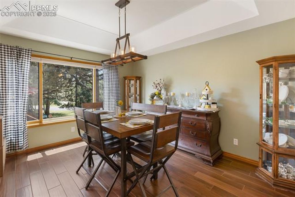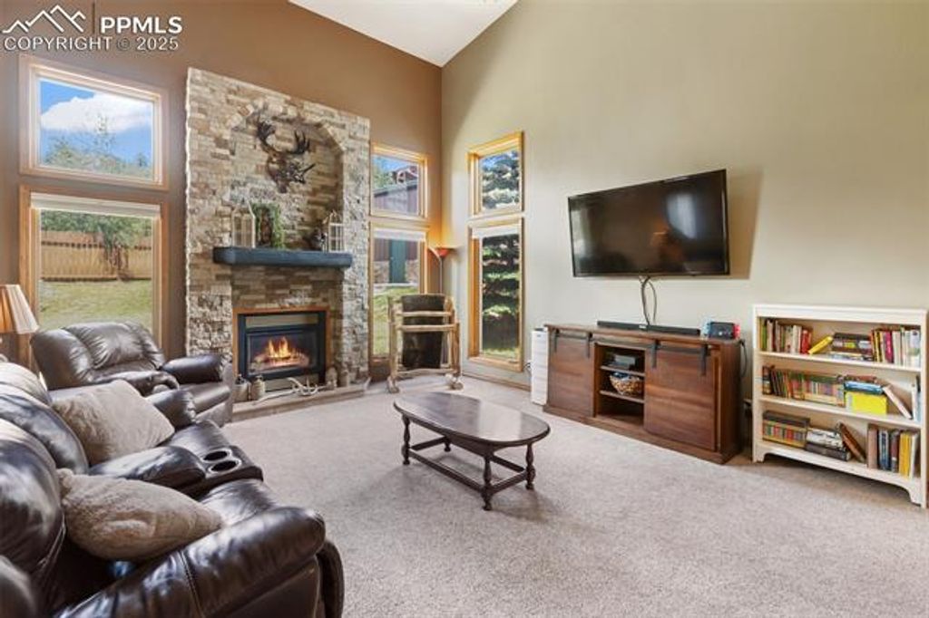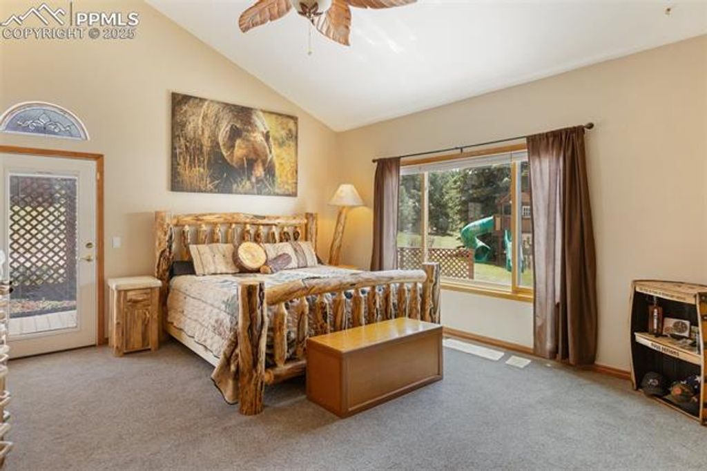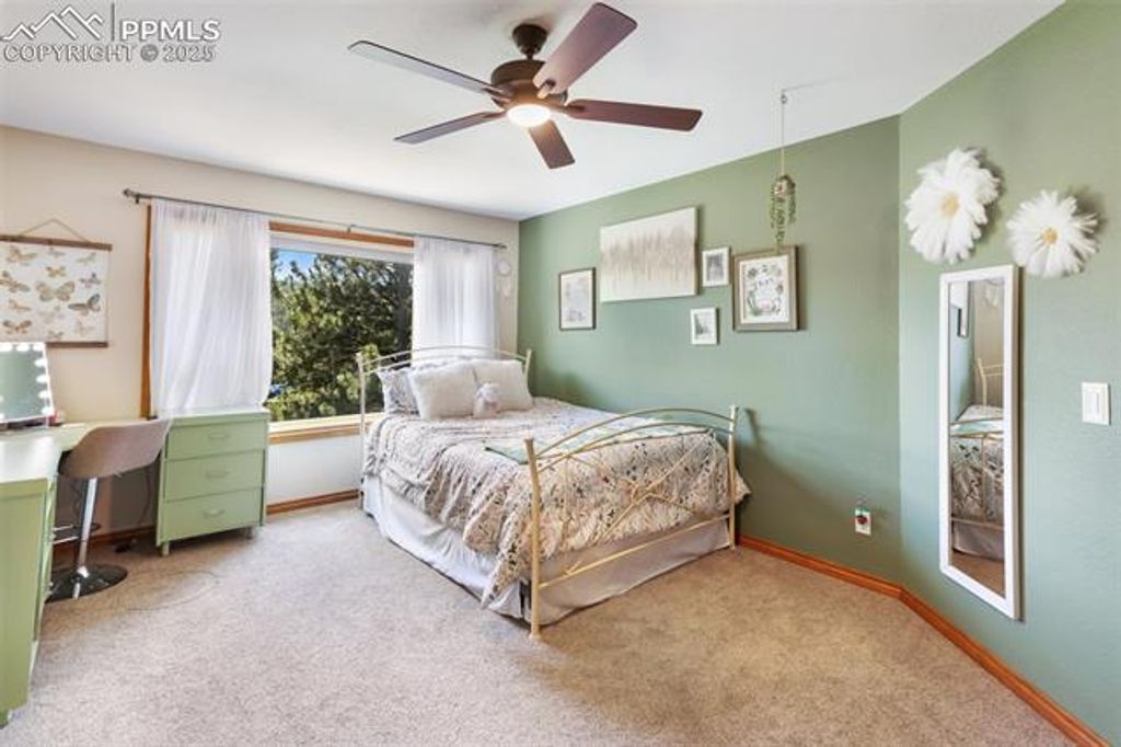Welcome to your mountain-view dream home! This thoughtfully updated property combines comfort, function, and stunning views of Pikes Peak"”all from your own backyard. As you arrive, a finished attached two-car garage and a beautifully stamped and stained concrete sidewalk (replacing the former flagstone) set the tone. Step past the front door and onto the expansive 15x35 ft patio"”perfect for entertaining or just soaking in that clear, unobstructed southern view of Pikes Peak. Inside, wood-look tile flows throughout the main floor, complimented by plush new carpet installed in 2023. A separate dining room connects to the chef's kitchen, complete with soft-close cabinetry, matching appliances, spice drawer, large appliance cabinet, and ample storage"”all part of a 2020 remodel. The spacious main-level master suite features its own fireplace and a full bathroom with a jetted soaking tub, stained-glass accents, and an artistic tile shower. Step from the master to a private side deck with a hot tub (new cover and screen, recently serviced). A cozy family room with a floor-to-ceiling fireplace, bonus office/flex room, half-bath, and under-stairs storage complete the main level. Upstairs you'll find three large bedrooms, a loft area, and a newly remodeled bathroom. Updates include new lighting, ceiling fans, and a new furnace (2022). The fully fenced backyard offers plenty of space for pets to roam, while the 30x30 shop"”with a full concrete apron and separate driveway"”adds incredible functionality for vehicles, toys, or workshop needs. There's even a 3.5 ft deep crawl space spanning the length of the home for seasonal storage, and additional storage above the garage in the attic. This property truly checks every box"”don't miss the chance to make it yours!
