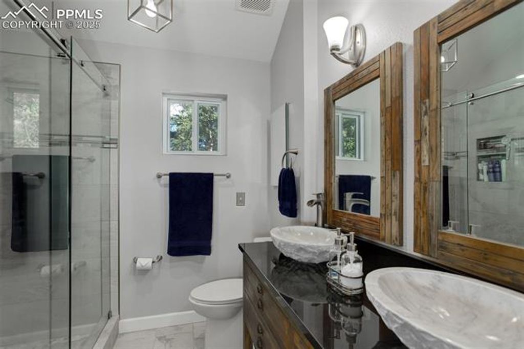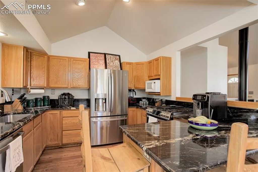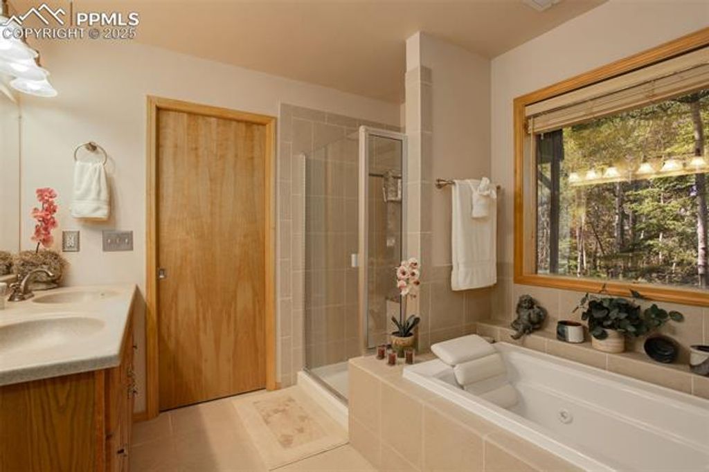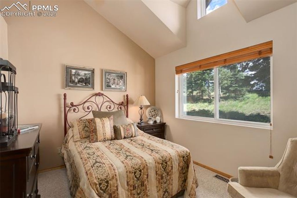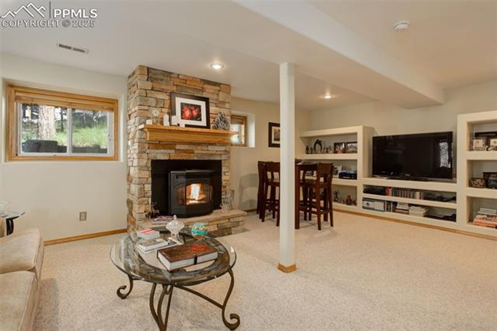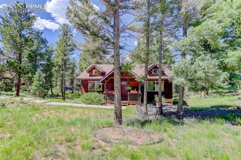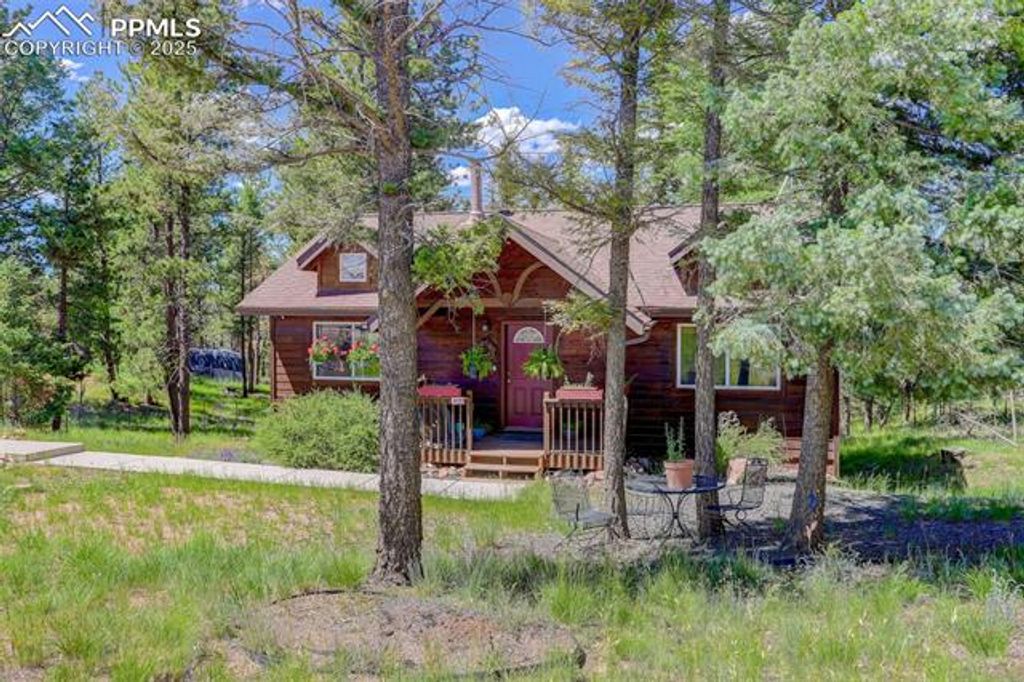 Welcome home to your very own Rocky Mountain Retreat! This stunning property exudes pride of ownership and boasts an immaculate, well-maintained interior. As you step inside, you'll immediately notice the open floor plan, soaring vaulted ceilings, and an abundance of windows that flood the home with natural light. The heart of the home is the gourmet kitchen, featuring stainless steel appliances, a gas range, granite countertops, a breakfast bar, and a separate dining area - perfect for cooking and entertaining. Recent updates include brand-new hardwood floors, fresh interior paint, modern kitchen appliances, and counters, as well as a new furnace, newer water heater, and a recently replaced roof. The main level bathroom has been completely remodeled with a stunning new shower, dual sinks, elegant countertops, new flooring, and updated light fixtures. Whether you're enjoying your morning coffee on the covered front porch or relaxing on the private rear deck, you'll be surrounded by the peaceful sounds of nature, with breathtaking views of pine and aspen trees and the wildlife that calls this place home. The professionally finished walkout basement offers a spacious living area with built-ins, a cozy fireplace, an oversized full bath, and ample storage space. As a resident, you'll have exclusive access to fishing at Lake Magnuson and the community ponds, a true luxury. Additionally, neighborhood trails connect directly to Mueller State Park, offering endless opportunities for hiking, mountain biking, and horseback riding. Conveniently located just 15 miles from Cripple Creek, 30 minutes from Manitou Springs, and 10 minutes to the Florissant Fossil Beds National Monument, this home is an ideal spot for both full-time living and a weekend mountain getaway. Whether you're seeking a primary residence or a serene escape, this beautifully appointed home is sure to capture your heart.