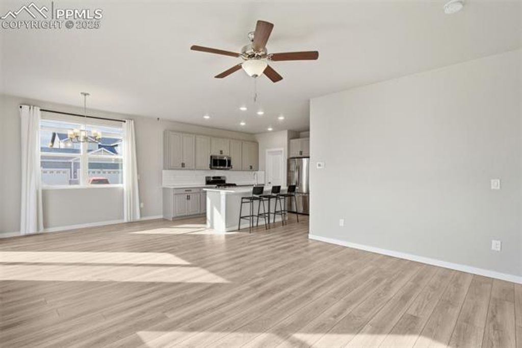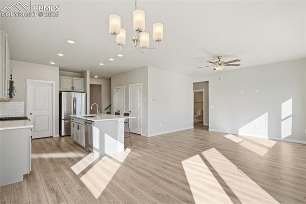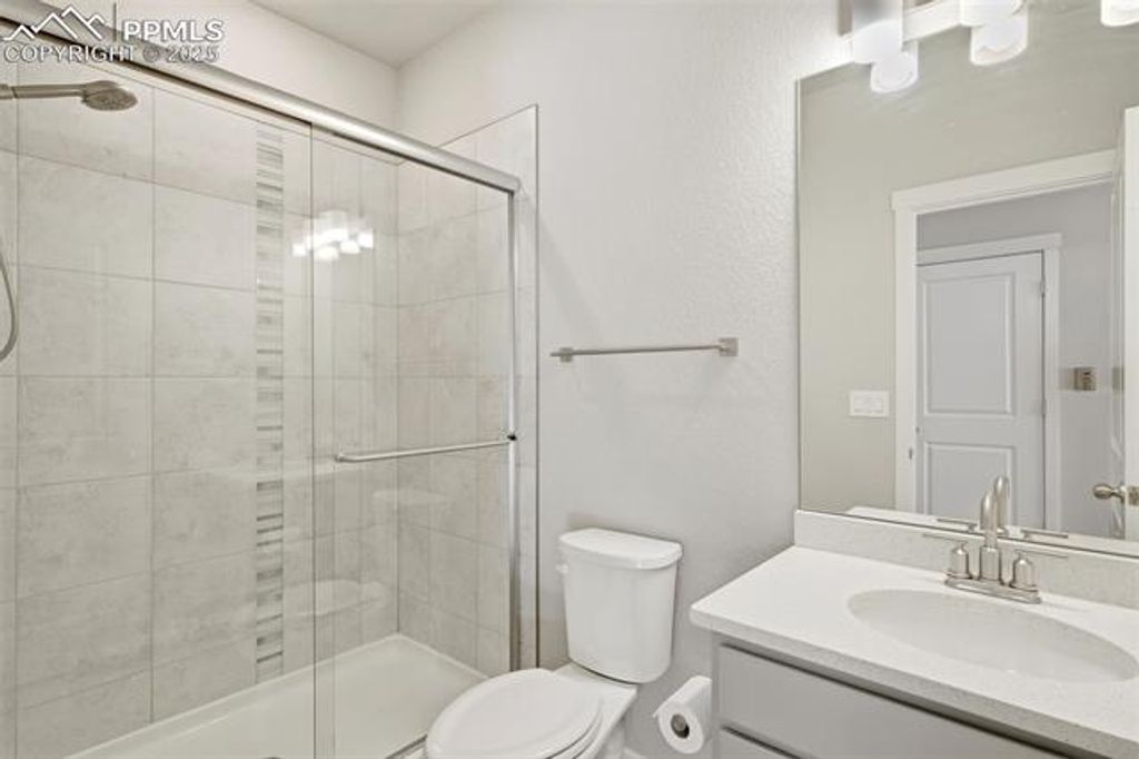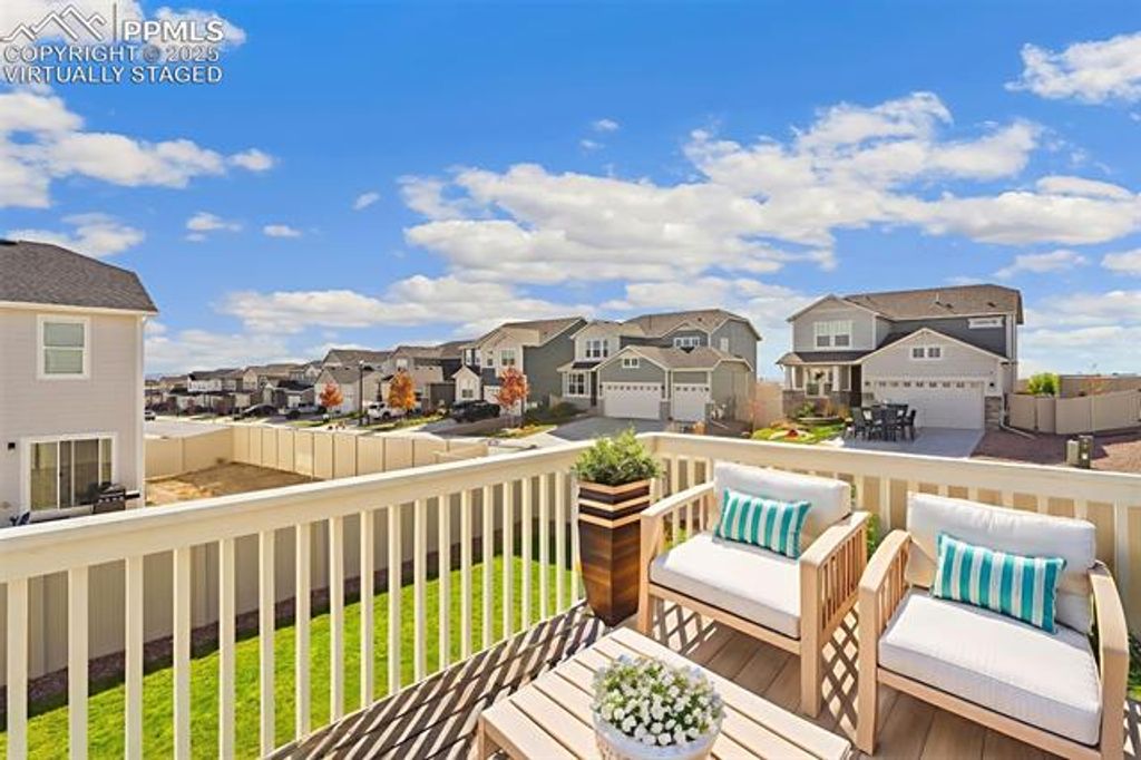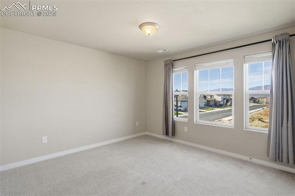 Why wait for a new? This home is Better than new! This stunning 5-bedroom, 4-bath home offers 3,377 sq. ft. is a beautifully designed living space and is the only 3-car garage with gorgeous views of Pikes Peak and the front range views. The only 3 car garage for sale in the neighborhood. Step inside to find a bright, open-concept floor plan that effortlessly blends comfort and functionality. The main level features a versatile room can be used as an office/bedroom and a convenient pocket office just off the entryway"”perfect for remote work or study. The spacious living room has an abundance of natural light, creating a warm and inviting atmosphere. Designed for everyday living and entertaining, the exceptional kitchen includes a big center island with seating, quartz countertops, stainless steel appliances, and a large walk-in pantry with custom cabinetry. There is also a main level bedroom, this home has it all. Upstairs, the primary suite features a luxurious en-suite bath with dual vanities, a glass-enclosed shower, and a built-in makeup vanity. Three additional bedrooms, a full bath, laundry, and an oversized loft complete the upper level"”ideal for a playroom, media area, or home gym. The fully finished basement provides a fantastic space for entertaining with a large family room, additional bedroom, full bathroom, and ample storage. Outside, enjoy the fully landscaped and fenced backyard. Additional highlights include central A/C, a tankless water heater, Curtains and blinds and a 3-car garage offering plenty of storage. Conveniently located near Fort Carson, Schriever SFB, and Peterson SFB, with no HOA. Don't miss the opportunity to make this exceptional property your new home!