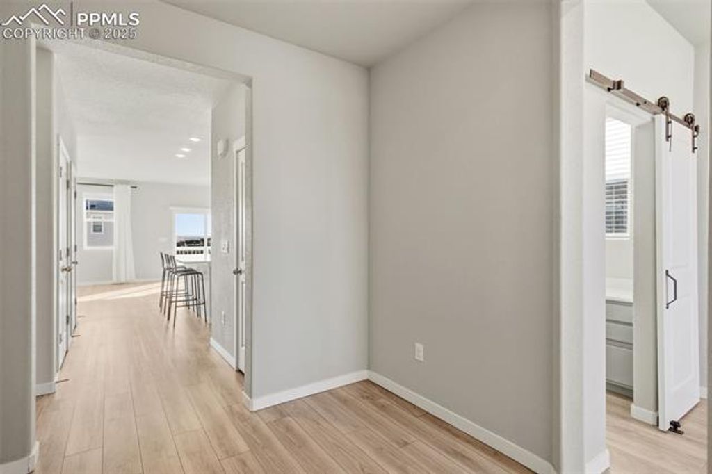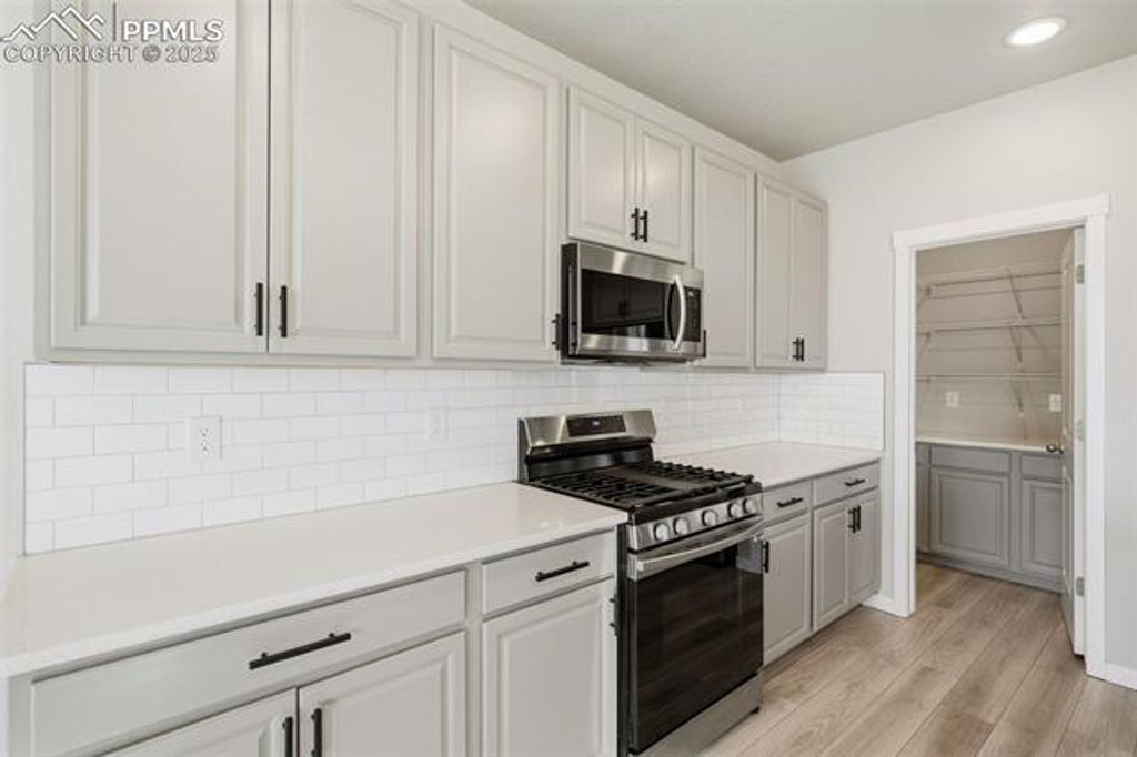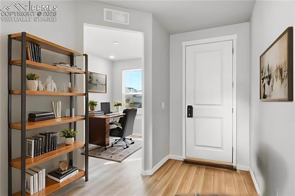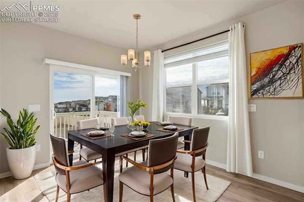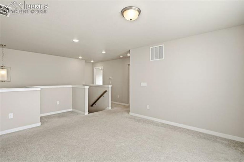 Why wait for a new? This home is Better than new! This stunning 5-bedroom, 4-bath home offers 3,377 sq. ft. is a beautifully designed living space and is the only 3-car garage with gorgeous views of Pikes Peak and the front range views. The only 3 car garage for sale in the neighborhood. Step inside to find a bright, open-concept floor plan that effortlessly blends comfort and functionality. The main level features a versatile room can be used as an office/bedroom and a convenient pocket office just off the entryway"”perfect for remote work or study. The spacious living room has an abundance of natural light, creating a warm and inviting atmosphere. Designed for everyday living and entertaining, the exceptional kitchen includes a big center island with seating, quartz countertops, stainless steel appliances, and a large walk-in pantry with custom cabinetry. There is also a main level bedroom, this home has it all. Upstairs, the primary suite features a luxurious en-suite bath with dual vanities, a glass-enclosed shower, and a built-in makeup vanity. Three additional bedrooms, a full bath, laundry, and an oversized loft complete the upper level"”ideal for a playroom, media area, or home gym. The fully finished basement provides a fantastic space for entertaining with a large family room, additional bedroom, full bathroom, and ample storage. Outside, enjoy the fully landscaped and fenced backyard. Additional highlights include central A/C, a tankless water heater, Curtains and blinds and a 3-car garage offering plenty of storage. Conveniently located near Fort Carson, Schriever SFB, and Peterson SFB, with no HOA. Don't miss the opportunity to make this exceptional property your new home!