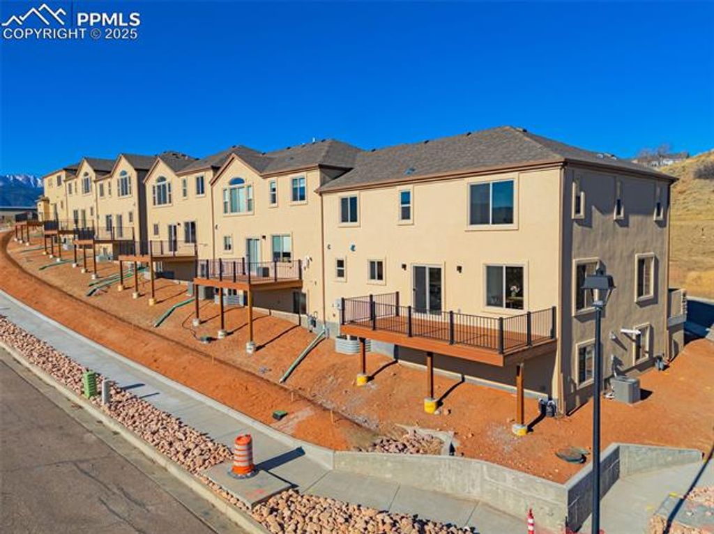 Welcome to your new luxury townhome on the westside of Colorado Springs. Positioned amidst the region's celebrated hiking trails, these townhomes are conveniently situated near Garden of the Gods and provide easy access to Interstate 25 for your daily commute. Each townhome is meticulously designed with an expansive floor plan spanning between 2,500 to 2,900 square feet. Finished basements and high-end finishes characterize the interior, complemented by quartz countertops in the kitchen and bathrooms. Each bedroom is furnished with a private full bathroom and a walk-in closet. Additionally, a two-car attached garage is provided, equipped with an electric car charging station. The south-facing patio offers breathtaking panoramic views of the surrounding mountains.