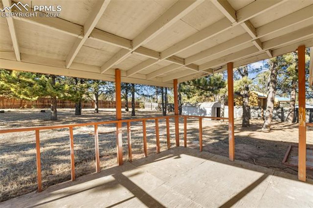 Welcome to this inviting mountain retreat in the heart of Woodland Park, where towering pines, fresh Colorado air, and a spacious, level lot create an ideal setting for relaxed mountain living. This ranch-style home offers a practical, easy-flow layout that connects the living area to a functional kitchen featuring stainless steel appliances, ample counter space, and a convenient pass-through bar"”perfect for everyday living and casual gatherings. Recent updates include newly remodeled basement bathroom, new LVP flooring and trim throughout the entire home, adding a clean, modern feel while maintaining warmth and durability. The bedrooms are filled with natural light and provide comfortable retreats and newly installed LVP flooring and closet doors. Downstairs, the basement expands your options with laundry, an additional bathroom, and flexible space well-suited for storage, hobbies, a workshop, or future living area potential. Step outside to enjoy a large, fenced, wooded, and level yard, ideal for pets, play, or simply soaking in the peaceful surroundings. A covered patio extends outdoor living through multiple seasons, while a storage shed keeps tools and gear neatly organized. With plenty of parking and a roof replaced in 2021, this home offers both convenience and peace of mind. Ideally located with easy access to hiking and biking trails, Pikes Peak recreation, and Woodland Park's shops, dining, and amenities, this property supports a lifestyle rooted in the outdoors while staying connected to town. A versatile mountain home with room to grow"”discover the possibilities this Woodland Park retreat has to offer.