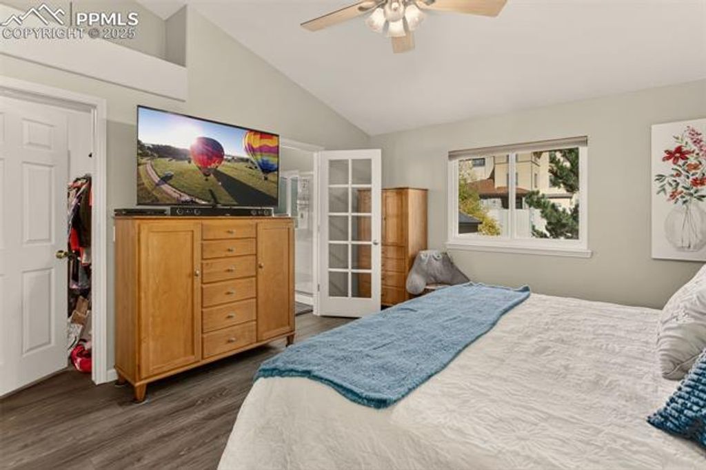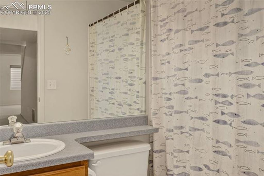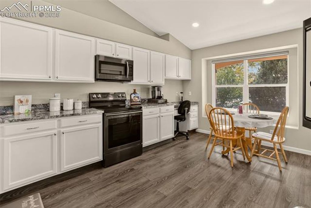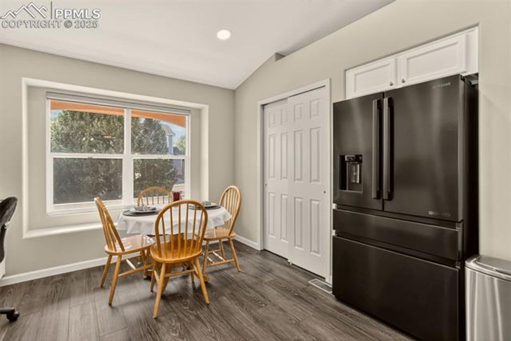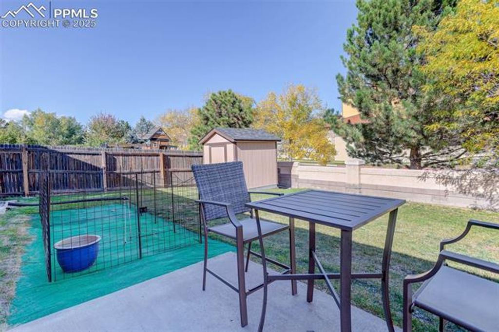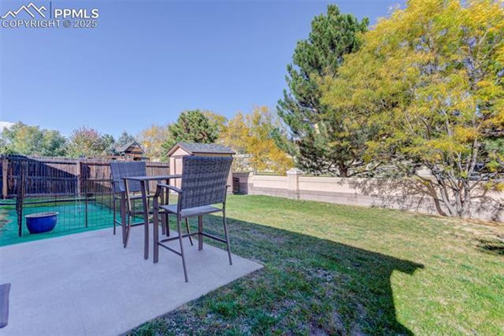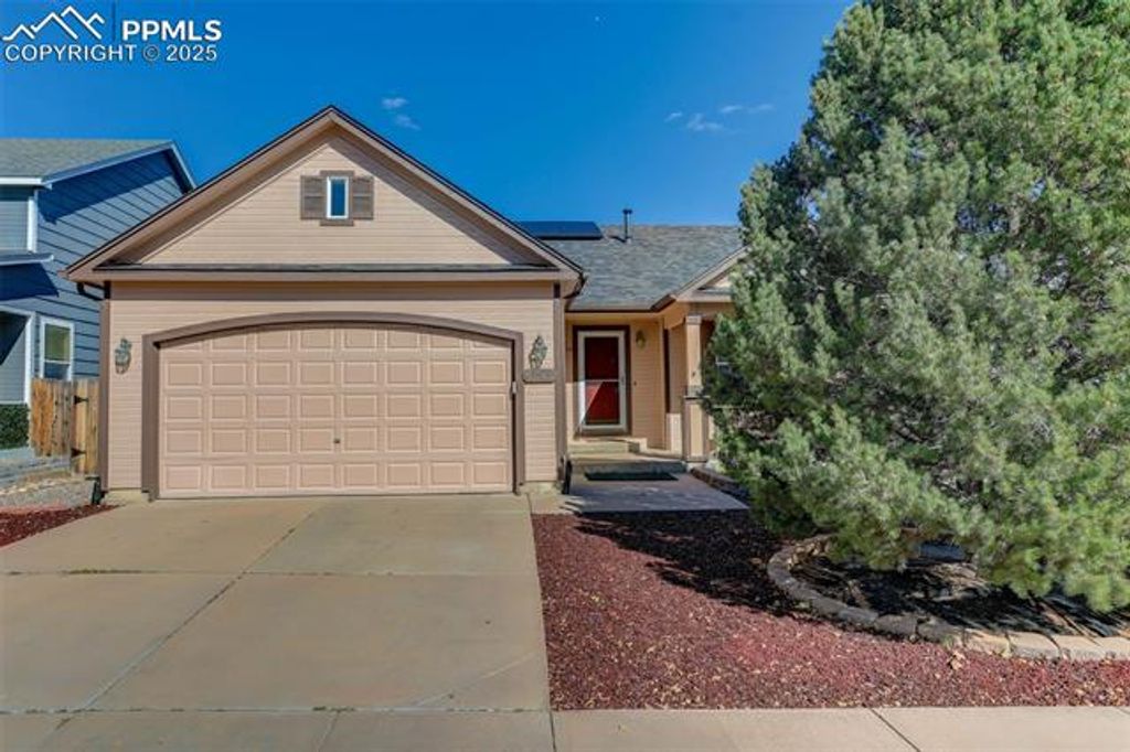 Comfortable and Updated Ranch Home with Paid-Off Solar, Class 4 Roof, and a Flexible Floor Plan! Enjoy main-level living in this beautifully updated 4-bedroom, 3-bath home tucked on a quiet street close to parks, shopping, and D20 schools. A welcoming front porch sets the tone for this inviting property, perfect for morning coffee or relaxing evenings. Step inside to a bright, open layout featuring new flooring upstairs, fresh interior paint, and a kitchen updated with new granite countertops, stainless steel appliances, and plenty of cabinet space. The vaulted ceilings and open flow between the living and dining areas make the main level feel spacious and connected. The main floor offers two bedrooms, including the primary suite with a walk-in closet and private bath, along with a secondary bedroom that works great as an office or guest room. The new upstairs windows fill the home with natural light while improving energy efficiency. Downstairs, enjoy a huge family room, perfect for movie nights, games, or gatherings plus two additional bedrooms, a full bath, a laundry area, and extra storage. The layout offers flexibility for guests, hobbies, or work-from-home space. Outside, the fully fenced backyard features a large storage shed, mature landscaping, and plenty of room for pets, gardening, or outdoor entertaining. The Class 4 impact-resistant roof and paid-off solar panels provide long-term durability, energy efficiency, and peace of mind. Additional highlights include a newer water heater, central air conditioning, and an attached two-car garage for added comfort and convenience. Located near the Powers corridor and quick access to major routes, this home combines thoughtful updates, low-maintenance living, and unbeatable value in one of Colorado Springs' most convenient areas!