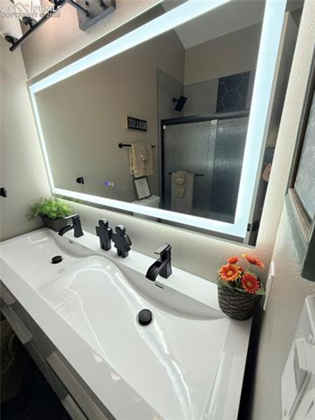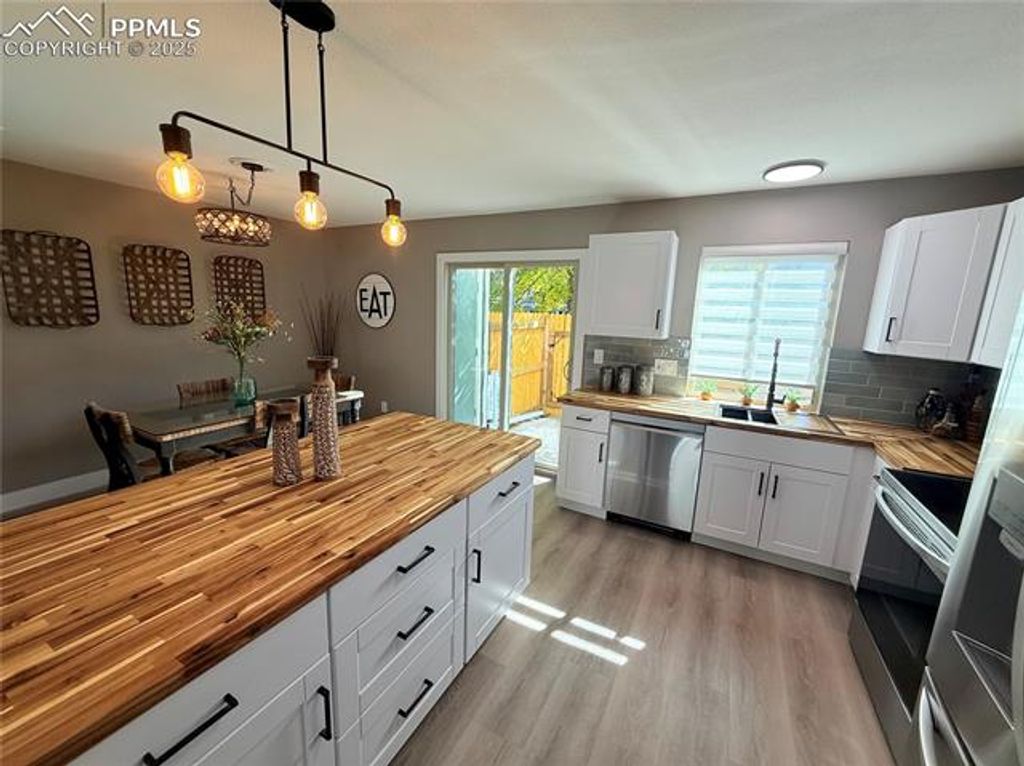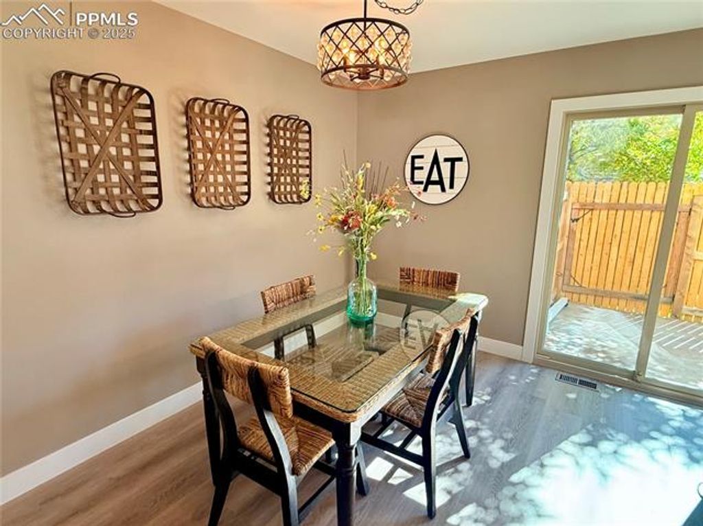 BEAUTIFUL & IMMACULATE - PREPARE TO BE AMAZED! This completely renovated 2-bed, 3-bath townhome has all the bells and whistles! High end workmanship and modern amenities to impress even the pickiest buyer. So many features and upgrades to list but we'll try... Step inside to discover impressive new luxury vinyl plank flooring and fresh paint throughout, creating a bright and inviting atmosphere. The open-concept main level offers a spacious living room with a cozy fireplace doubling as a dry bar, with a vaulted ceiling and skylight providing nice natural lighting throughout the day"”perfect for both relaxing and entertaining. The kitchen is a showstopper, boasting a large breakfast bar island, sleek/new stainless steel appliances and abundant new cabinet space to meet all your culinary needs. Great kitchen sink with optional built-in accessories for added convenience. Adjacent dining room area opens to the prvate, enclosed rear patio perfect for you pets and grill with a secured storage area. Vaulted ceilings upstairs boasts a large primary bedroom suite with walk-in closet and private bathroom with dual sinks and loads of extras. 2nd bedroom also features it's own stylish ¾ bath, with laundry closet in hallway. Every detail has been carefully considered "” from the custom tile, modern vanities, and backlit mirrors, to the updated hardware, gas-pipe railing, all new windows, wall switches and light fixtures. Even the new door stops are cool! And just to top it off, the owner installed a brand-new furnace for complete peace of mind. Over $100k in improvements and upgrades! Wow! Located just minutes from Fort Carson, this home offers easy access to downtown, shopping, dining, schools, and parks. The HOA covers landscaping, snow removal, and trash service, making maintenance a breeze. Don't miss this move-in-ready gem "” schedule your showing today!