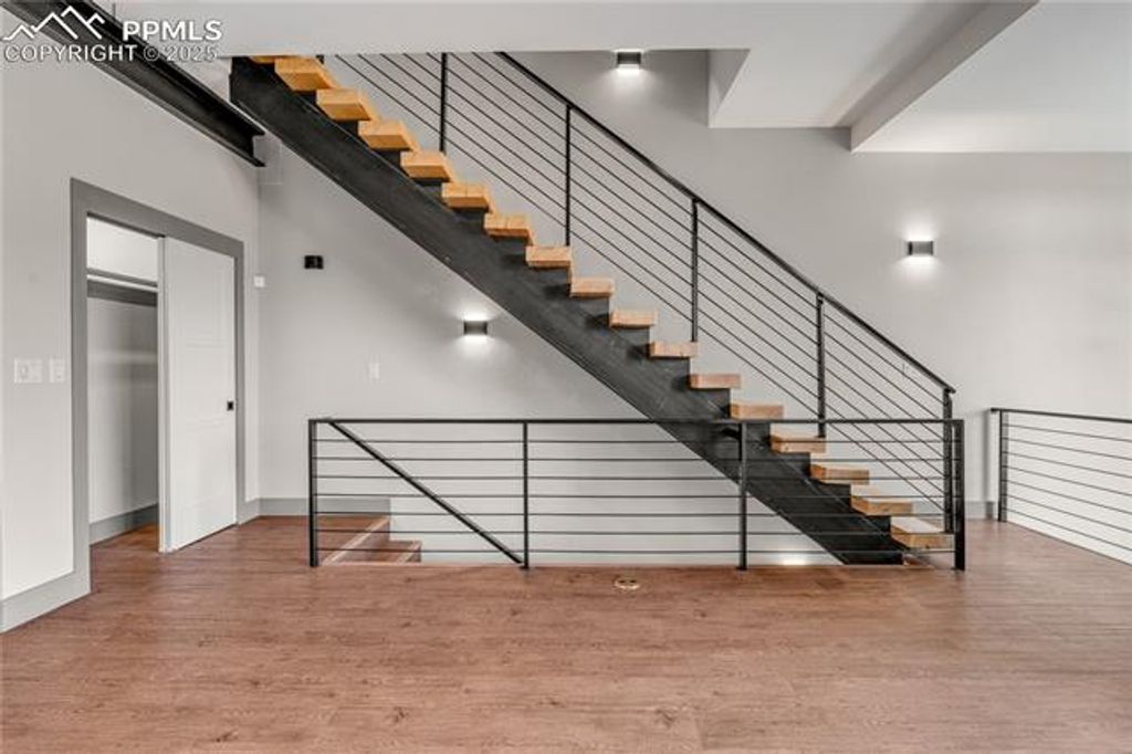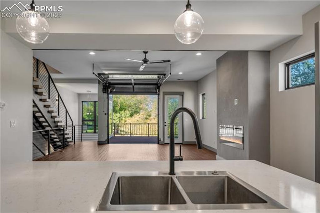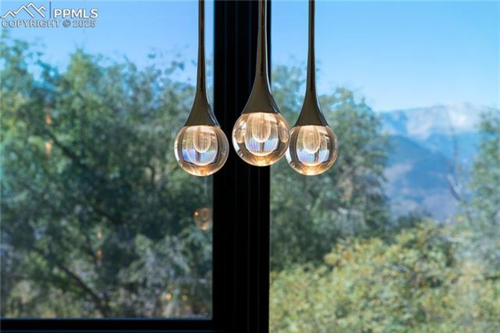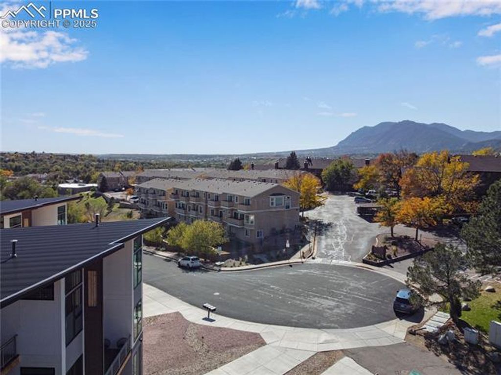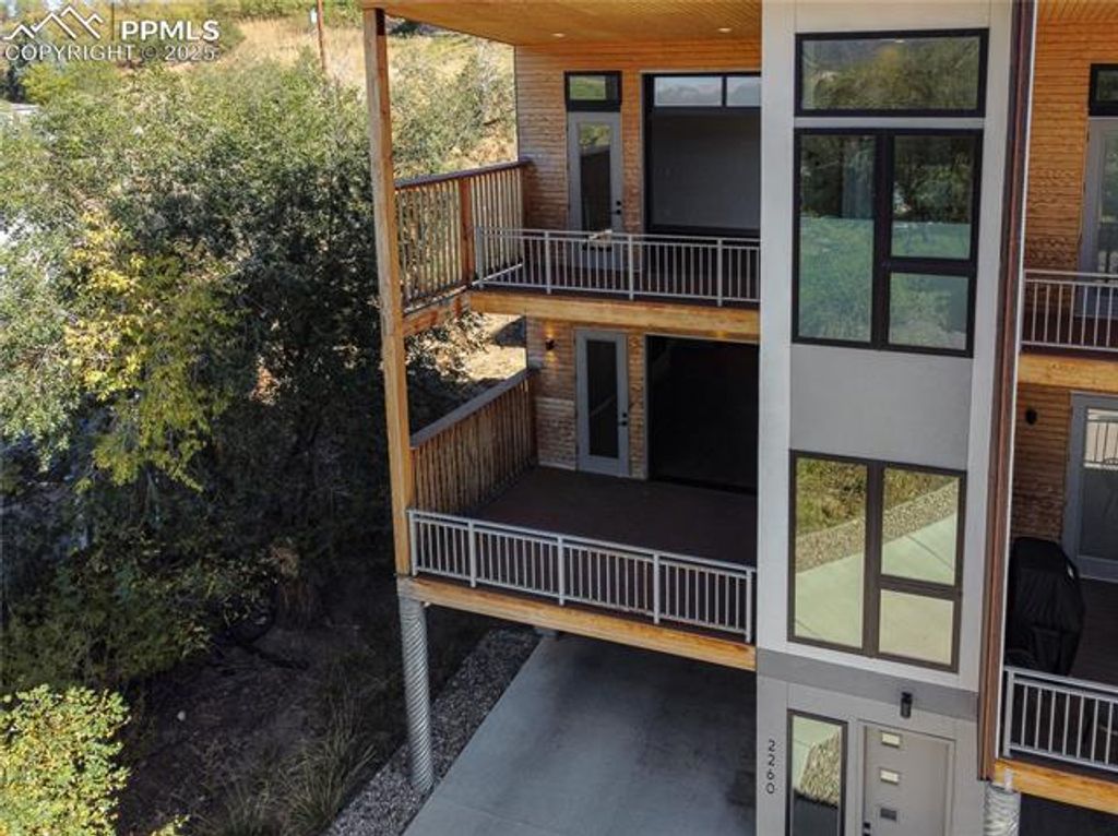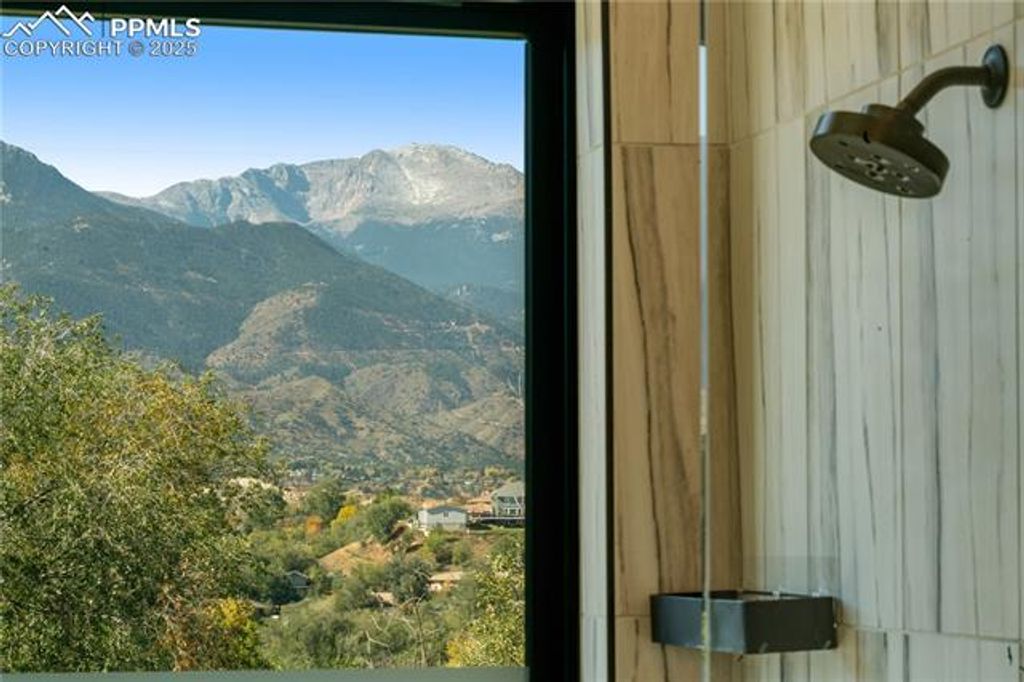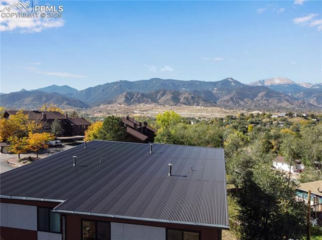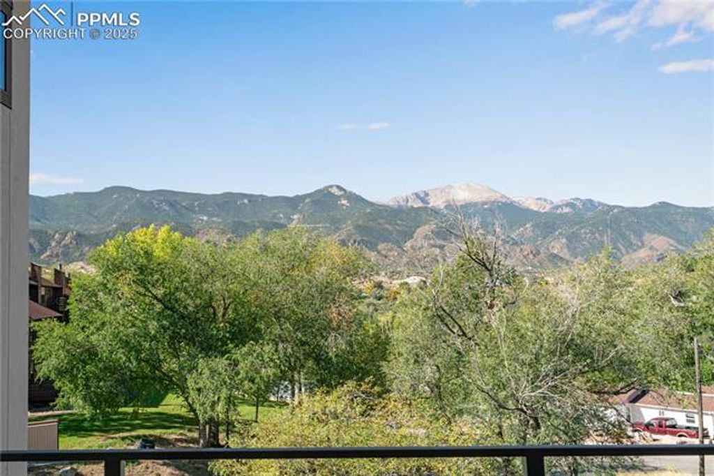 Experience modern mountain living at its finest in this stunning west-side Colorado Springs home! Designed with a perfect blend of style and comfort, this residence showcases contemporary finishes and breathtaking views of Pikes Peak and the Front Range. Step inside to find an inviting main level with luxury vinyl plank flooring, soaring 9-ft+ ceilings, recessed lighting, and solid wood doors with sleek lever handles. The living room is warm and welcoming with an electric fireplace, large tinted windows for year-round comfort, and direct access to a spacious composite deck where you can soak in the mountain views. The chef-inspired kitchen is both beautiful and functional"”featuring a waterfall-edge quartz island, stainless steel appliances, stylish tile backsplash, ample cabinetry, and pantry. A bright dining area, powder bath with designer finishes, and a well-equipped laundry room with sink and cabinetry complete the main floor. Upstairs, modern elegance continues with two spacious secondary bedrooms featuring vaulted ceilings, recessed lighting, and double-door closets. The shared bath boasts a double vanity with quartz counters and an oversized tiled shower with seating. The primary suite is a true retreat, offering a private balcony with panoramic views of Pikes Peak, vaulted ceilings, and a luxurious five-piece bath with stone tile flooring, soaking tub, walk-in shower, and dual vanities. The exterior is just as impressive"”low-maintenance composite decks, durable metal and concrete siding, and a long driveway for extra parking. The oversized two-car garage is fully drywalled and includes a storage closet and EV charging station. Additional highlights include central A/C, security system, and no HOA! Located minutes from Old Colorado City, Garden of the Gods, and Bear Creek Park, this stylish and move-in ready home perfectly combines modern design, convenience, and unbeatable mountain views.