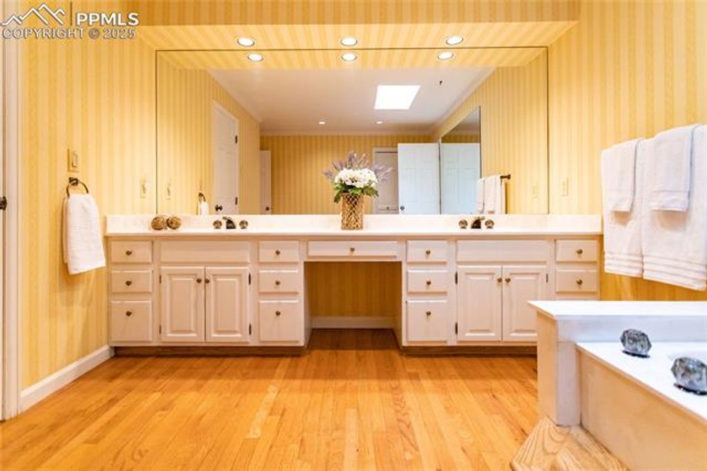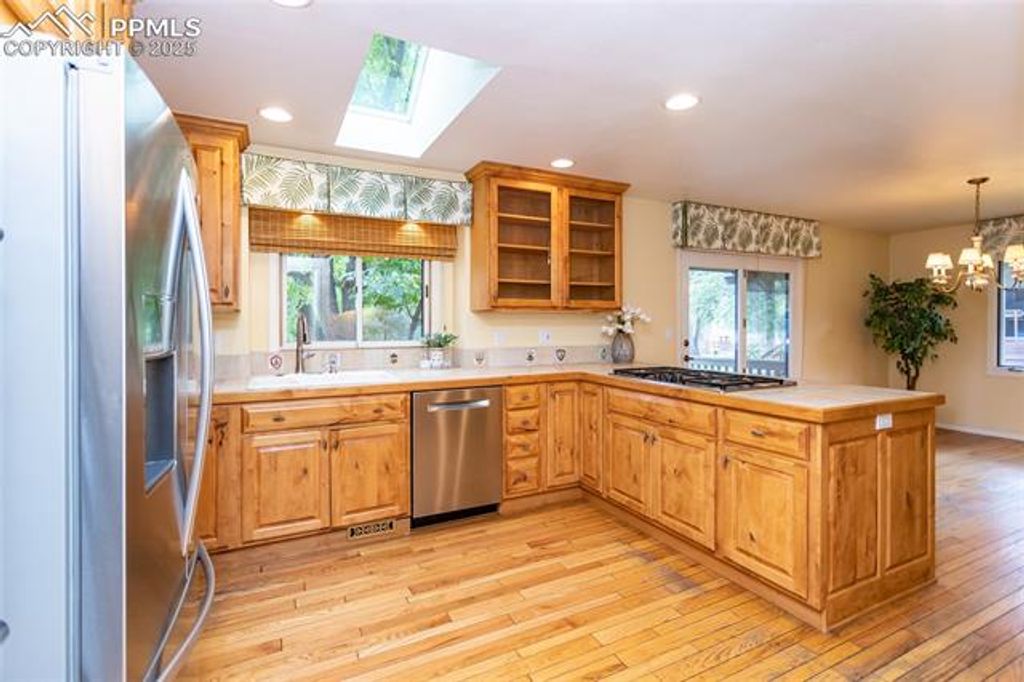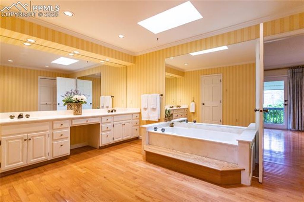 Great Opportunity in Broadmoor Valley! This beautiful walkout rancher is perfectly positioned a pristine lots in the neighborhood, offering views of the Country Club of Colorado golf course, the park, the creek, and the mountains. Enjoy true main-level living with a spacious primary suite featuring an oversized primary bathroom, a large walk-in closet with custom built-ins, and access to your own private covered deck overlooking a park-like backyard. The main level boasts hardwood floors throughout and a gas fireplaces for warm, cozy evenings. The large kitchen offers an expansive eat-in area, a walk-in pantry, and a butler's wet bar leading into the formal dining room"”perfect for entertaining. The formal living room showcases custom built-ins, a gas fireplace, and large windows that frame the stunning outdoor scenery, with access to a second deck. Step outside to the spacious Trex deck off the kitchen, ideal for hosting dinners, entertaining guests, or relaxing in the shade while enjoying the beautiful surroundings. Downstairs, you'll find three additional bedrooms, two bathrooms, and a large family room with a second gas fireplace. Step outside and enjoy the lush backyard and garden areas"”a perfect extension of your living space. This home is ready for its next owner to add personal touches and make it their own. Enjoy a prime location where you can walk to some of the finest restaurants in southwest Colorado Springs, the Country Club of Colorado, and nearby parks. Hiking trails are just a short drive away. Best of all, the home is located in the award-winning Cheyenne Mountain School District 12, home to the #1 rated high school in the state of Colorado. With easy access to I-25 and Highway 24 for quick trips to the mountains and ski resorts, and just minutes from Fort Carson and downtown Colorado Springs, this property offers the perfect balance of convenience, lifestyle, and location.