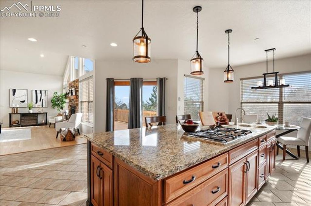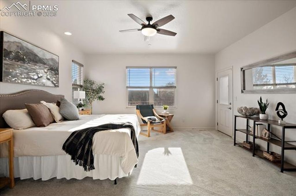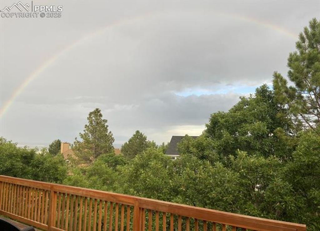 Welcome to this beautiful, move-in ready Cheyenne Mountain retreat offering over 4,300 square feet of elegant living space, stunning city lights, and mountain views"”all within award-winning District 12. Set on a beautifully landscaped lot with fresh mulch added in Summer '25, this home blends timeless design with thoughtful updates and modern comforts. A long concrete driveway leads to the three-car garage with built-in shelves and a workbench. Inside, enjoy clean lines, fresh paint, hardwood floors, 9-foot ceilings, and a bright family and dining space with beamed cathedral ceilings. A gas fireplace brings warmth, while several new windows"”including the large cathedral windows installed in Oct '25"”frame incredible views and bring tons of natural light. The dream kitchen is a true centerpiece to the home and features a huge island, matching GE appliances, and a new GE refrigerator from 2024. Main floor, the primary suite offers his-and-her walk-in closets and a luxurious bath with a new frameless shower (Oct '25), an eight-jet tub, double sinks, and a skylight. All five bedrooms include walk-in closets, and new carpet was added to the master and office in Sept '25. The basement provides approximately 2,000 square feet of finished space perfect for entertaining and relaxing with built-in surround sound, a walkout, abundant storage, built-in utility shelving, and a Jack-and-Jill bath with separate sinks. Additional highlights include updated light fixtures, ceiling fans, a newer water heater (2022), sprinkler system, Simply Safe security system, radon system, and invisible fence. A large, freshly painted deck overlooks the peaceful yard"”perfect for taking in mountain views and Colorado sunsets. With fresh updates, a spacious layout, and an unbeatable location, this Cheyenne Mountain retreat is ready to welcome you home.
