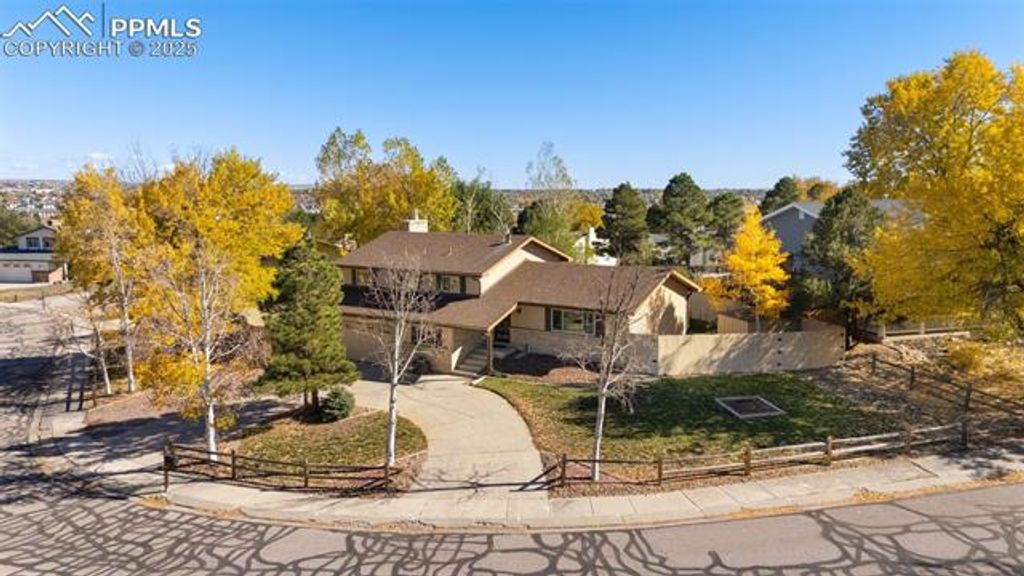 Introducing this beautiful spacious stucco and brick four level home on a huge .24 lot in the heart of one of Colorado Springs most sought-after neighborhoods of Villa Loma, near shopping, schools & parks. The huge lot is graced with an elegant circular drive welcoming guests and family alike The floor plan is still one of the most all-time popular and livable floorplans with spacious entertaining areas separated from the private bedroom areas of the home. This semi-updated beautiful home has fresh paint throughout, new carpet, new light fixtures and hardware, an incredible backyard with mature landscaping, covered patio, sitting area, shed and even backs to open space with walking trail. With double gates on both sides of the front fence, you can park 2 RV's or a boat, trailer or what have you safely in you backyard. In the interior, you will find large rooms with elevated bathrooms. There is also central A/C to keep you cool, updated vinyl windows, vaulted ceilings. In the lower level visible from the kitchen, there is a full wall gas fireplace in the huge family room. The spacious kitchen with all kitchen appliances has an area for a breakfast nook, and adjoins the formal dining room. The large laundry room off the family room has plenty of room for extra storage or extra freezer or refrigerators. The finished basement has an informal rec room with full wall storage, and possible extra bedroom that is now a hobby/workshop with cabinets and work bench. Come fall in love with this home and make it yours.