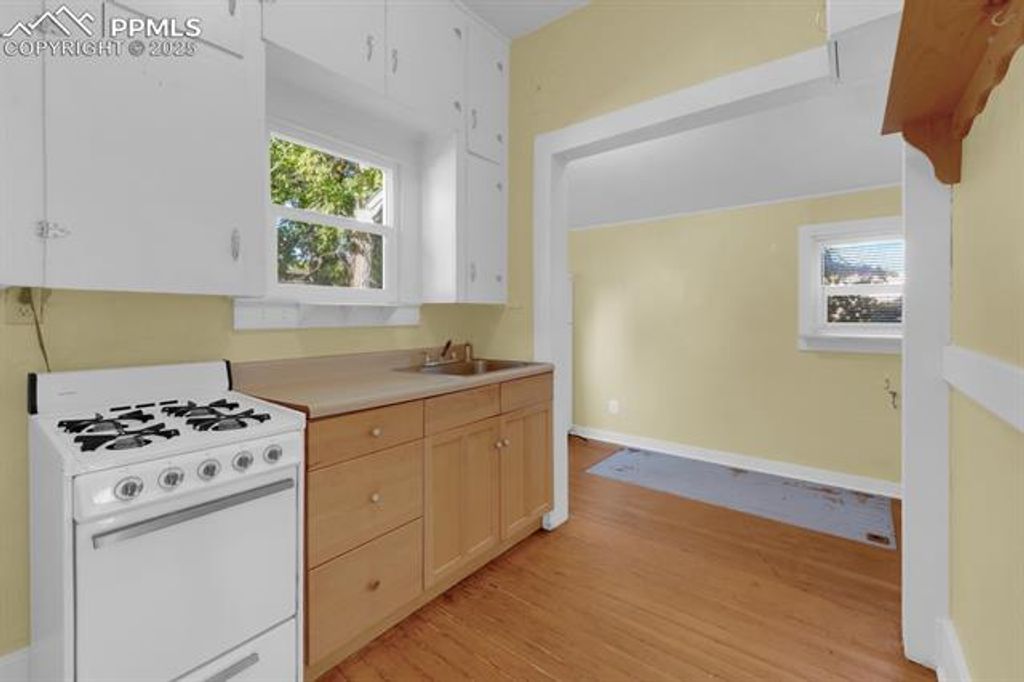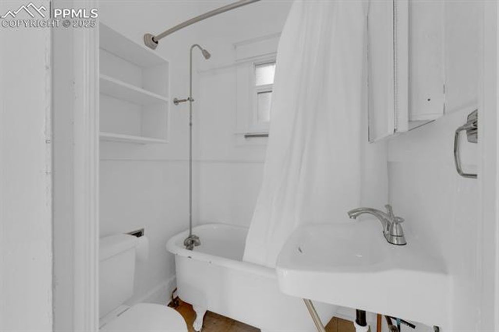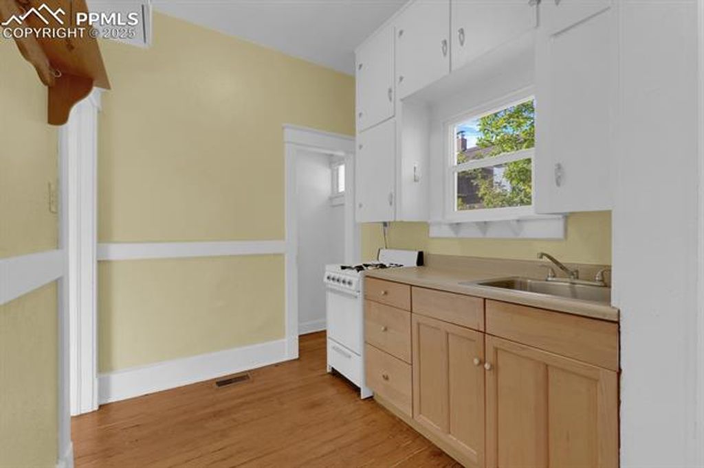 Adorable 2 bedroom and 1 bath home is the perfect retreat from your busy day to unwind. The home has an efficient kitchen with laundry hook ups for a stackable unit, a covered large porch, shade trees and a white picket fence in the front yard. While you lounge on the front porch, you'll notice right away the neighborhood is on a quiet street with a pleasant view of the well-manicured open space and lawn of the Colorado School of the Deaf and Blind. Parking is available on the gravel driveway or off-street parking if needed for guest or extra vehicles. There is a new roof and gutters, a new water heater, 9-foot ceilings, electrical upgrade, newer vinyl windows and plenty of storage in the basement with a second laundry hook up for full sized units. This home is located close to downtown, shopping and schools.