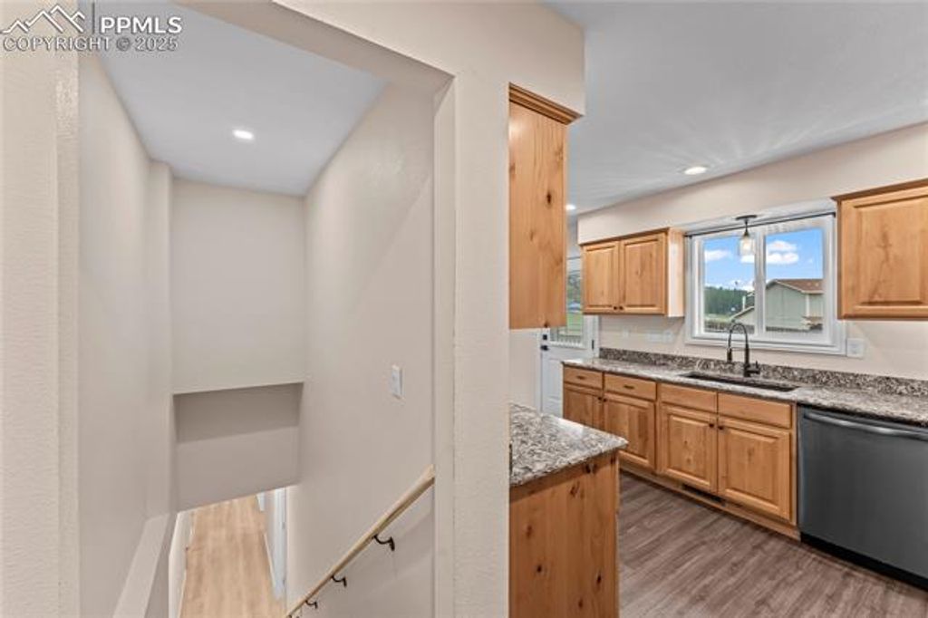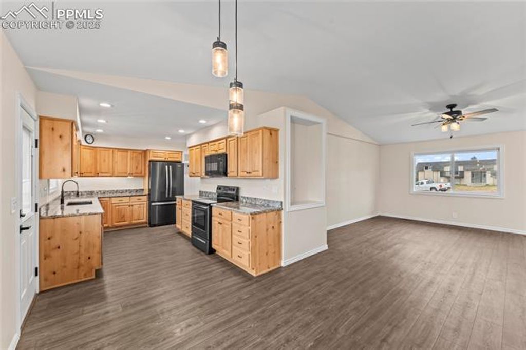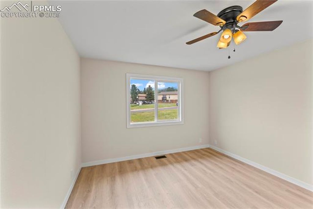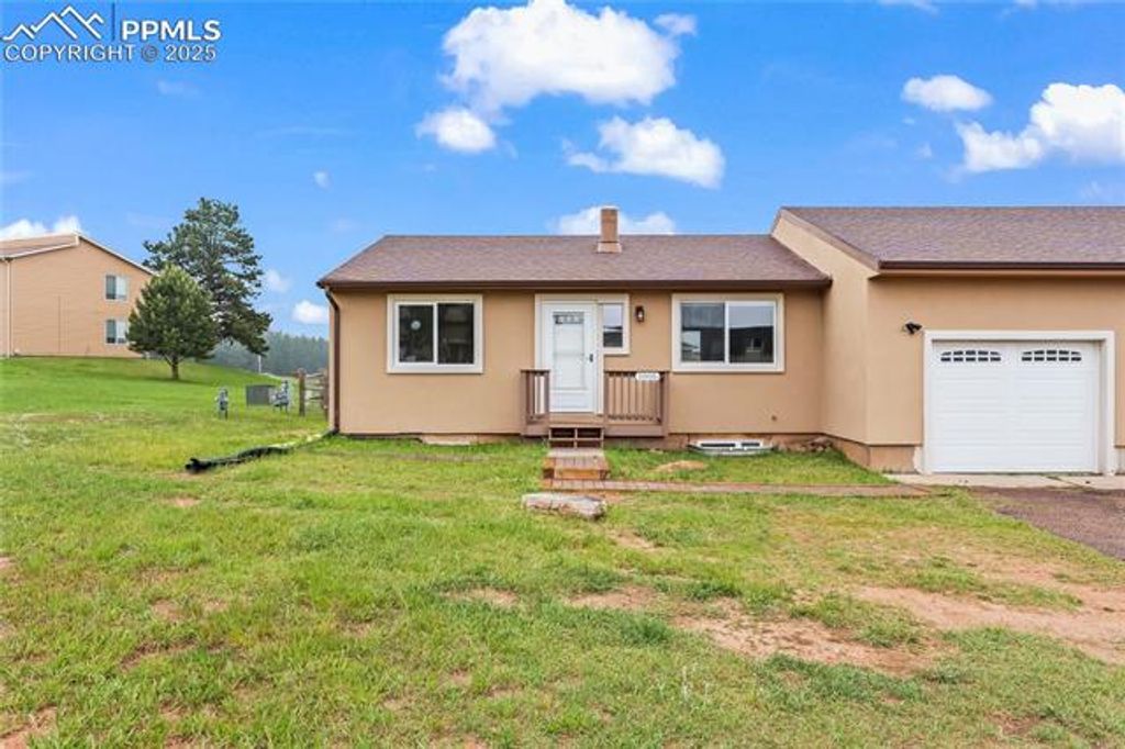 Recent Updates: - New Roof! Class 4 Shingle Roof Installed September 2025 - New LVP Flooring in all of the bedrooms, downstairs hallways and staircase Imagine stepping into your dream home"”a stunning single-story retreat designed for comfort and style! The open-concept kitchen welcomes you with warm, light wooden cabinets and gorgeous speckled granite countertops that elevate every meal prep. Picture yourself cooking with a sleek stainless steel double-door refrigerator, a black electric range with an integrated microwave, and a modern black sink featuring a pull-down faucet"”perfect for entertaining in the heart of the home. Three elegant pendant lights with glass shades cast a cozy glow over the dining room, while the rich, dark wood-look flooring flows seamlessly, harmonizing with the light beige walls and bright recessed lighting. The spacious living area beckons with a ceiling fan and integrated lights, creating an inviting space to unwind. Large windows flood the room with natural light, framing breathtaking outdoor views, while a sleek modern electric fireplace promises cozy nights during Woodland Park's crisp winters. Step outside to the charming front porch with its white door and composite railing, flanked by sunlit windows, and envision relaxing with your morning coffee. The attached single car garage offers plenty of storage, and exterior lights add a welcoming touch, while the grassy backyard, framed by a wooden fence, hints at endless outdoor possibilities under a bright, clear sky. Enjoy the mountain views while BBQing on the back deck Retreat to one of the five generously sized bedrooms, ceiling fans, and large windows with scenic views"”ideal for a growing family or guests. The two full bathrooms impress with tiled walls, a luxurious bathtub-shower combo, and a vanity topped with a striking blue-gray speckled countertop, complemented by a large framed mirror and elegant lighting.