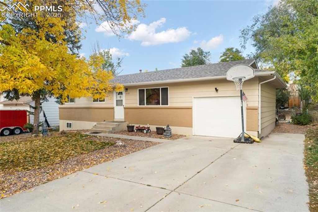 Welcome to this beautiful ranch-style home nestled on a 0.20-acre lot in an established, quiet neighborhood in central Colorado Springs. Enjoy the convenience of main-level living, where the entry flows into a comfortable living room filled with natural light, a focal point of the home. The main floor hosts three bedrooms and a full bath, while the updated kitchen stands out with newer cabinets, attractive countertops, and a central island with breakfast bar seating. Adjacent to the kitchen is the dining area, which provides a walk-out to the fantastic fenced backyard. The full, finished basement significantly expands the living space, featuring a second open living area, two additional bedrooms, a full bathroom, and a large finished laundry and storage room. Outdoor living is a delight with mature landscaping, an oversized stamped concrete patio, and a large stand-alone metal storage shed (barn-style with loft). Parking is provided by a 1-car attached garage. The property is packed with valuable updates, including a New Roof (2023), a New Water Heater (2022), an electrical panel upgrade (2021), a newer AC (2016), and an updated kitchen and bathrooms, with all appliances included. Commuting and access are seamless as the home offers convenient access to Powers Blvd, Academy Blvd, and I-25, making for an easy commute to the main thoroughfares of the city. Furthermore, there is no HOA or Metro District. This well-maintained, centrally located home is a must-see!